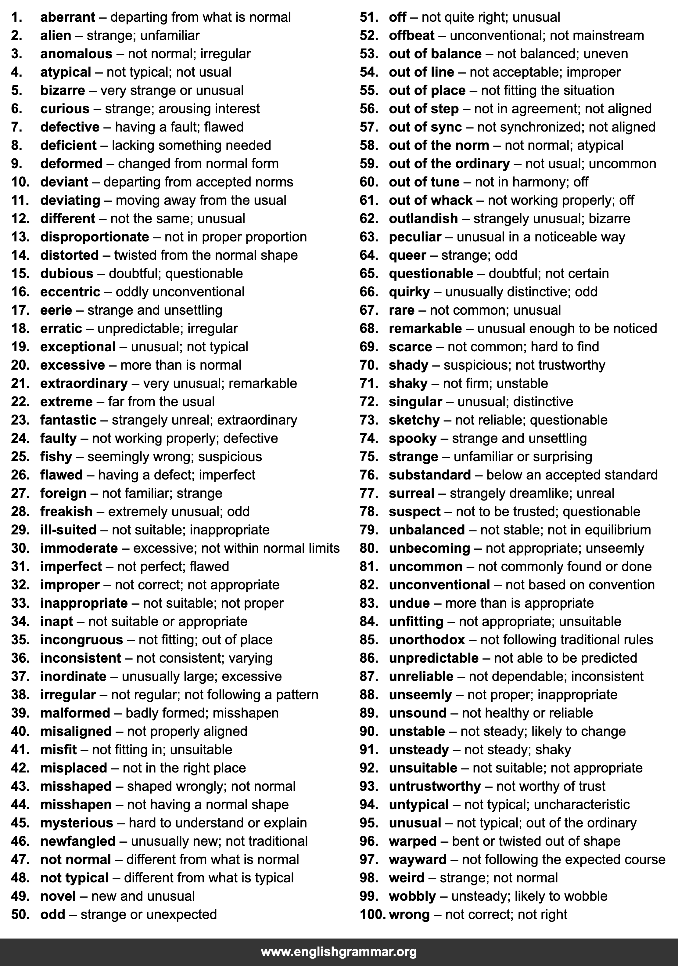 | 48. | not typical | different from what is typical |