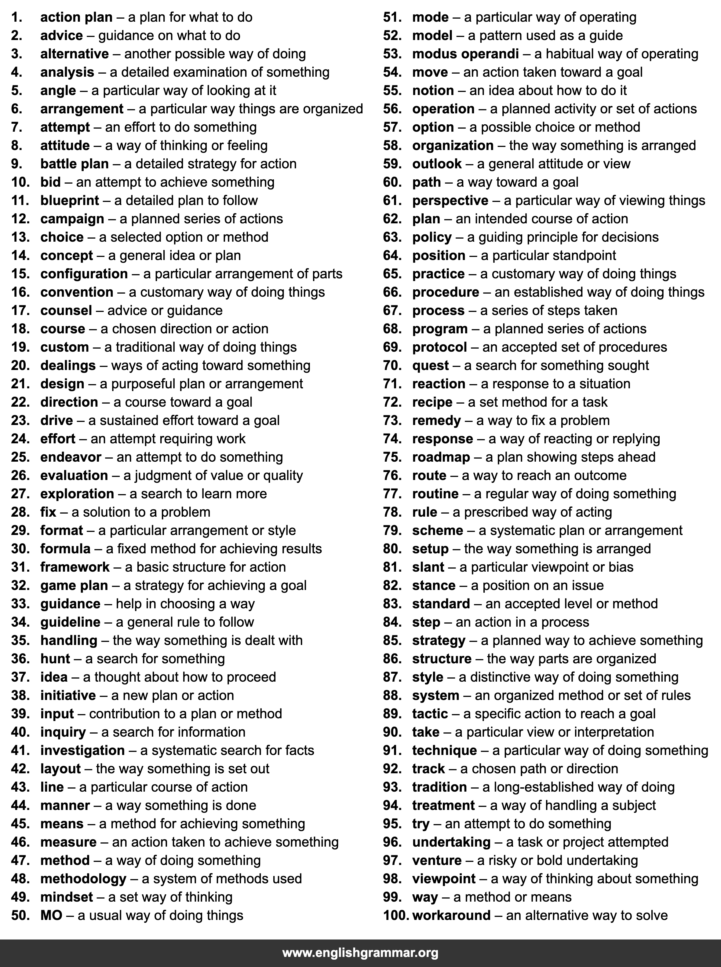 | 45. | means | a method for achieving something |