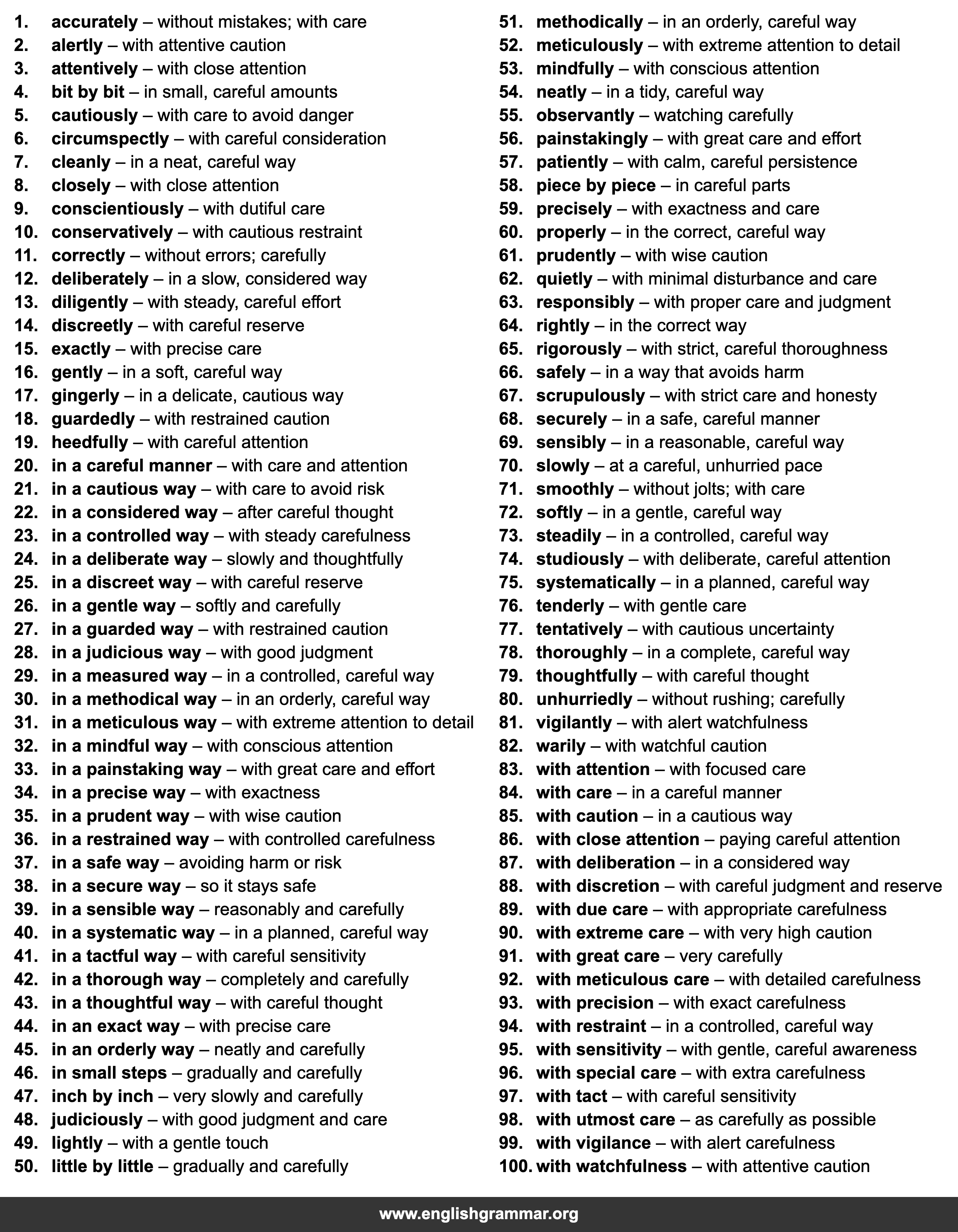 | 24. | in a deliberate way | slowly and thoughtfully |