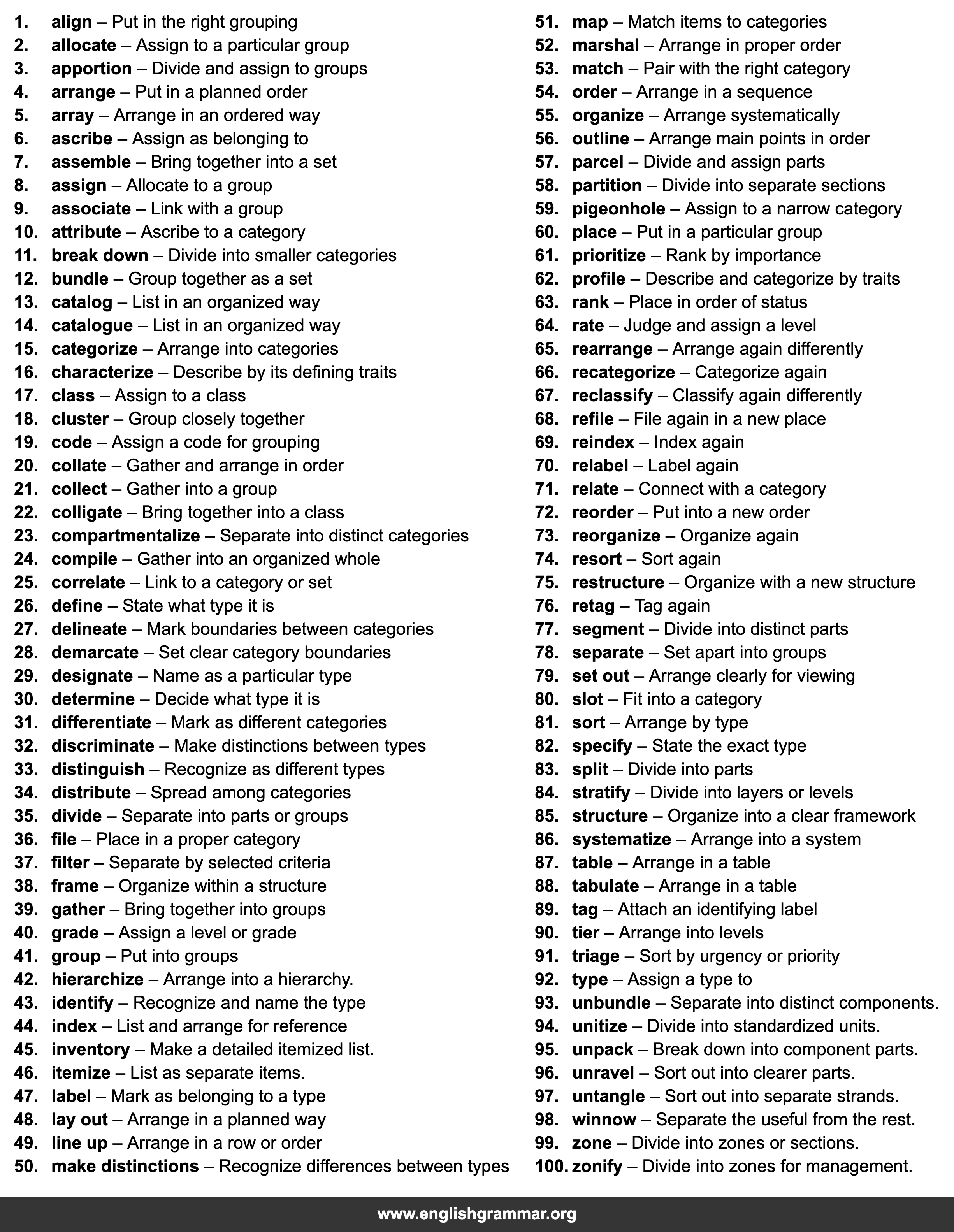 | 42. | hierarchize | Arrange into a hierarchy. |
