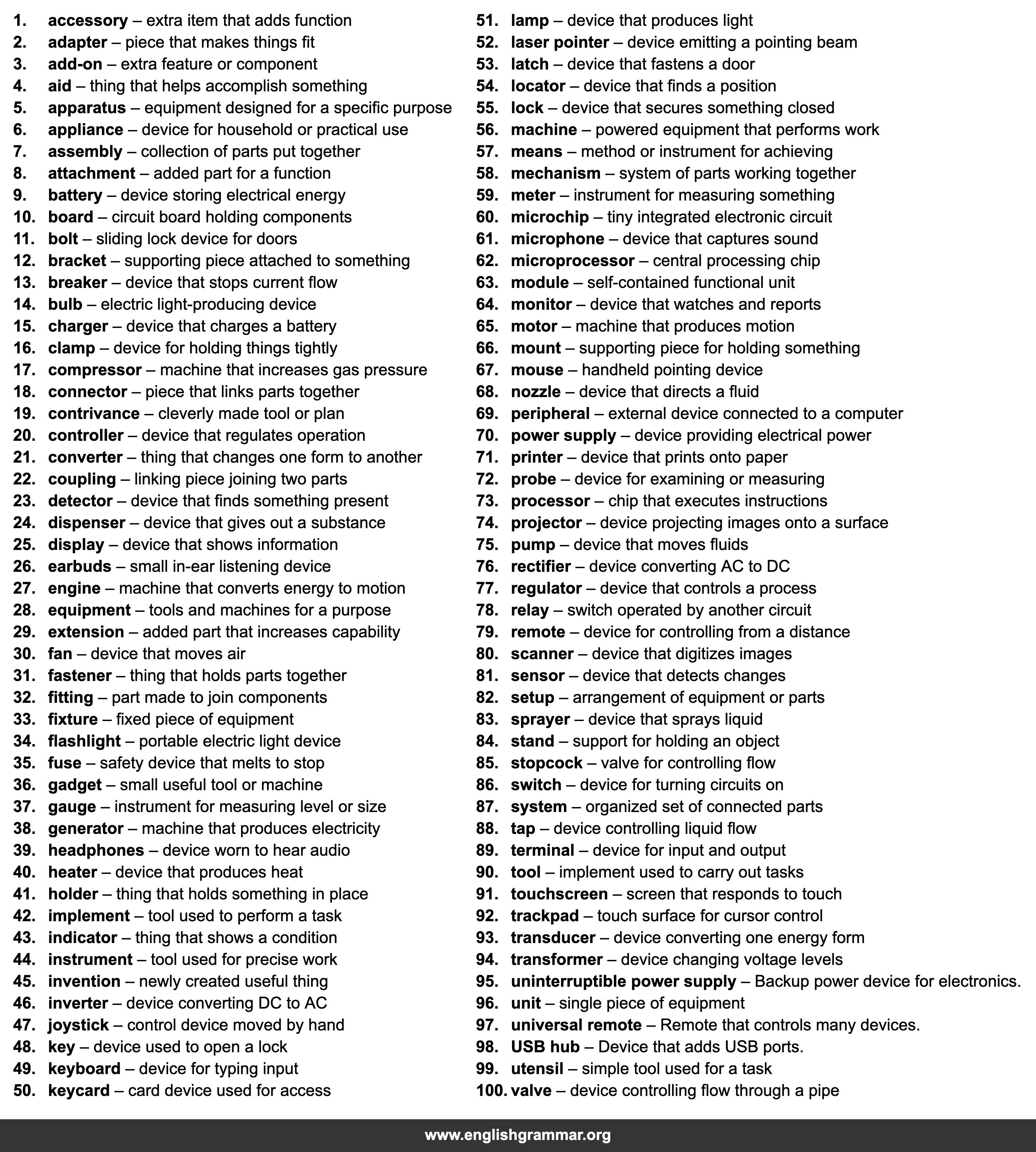 | 95. | uninterruptible power supply | Backup power device for electronics. |