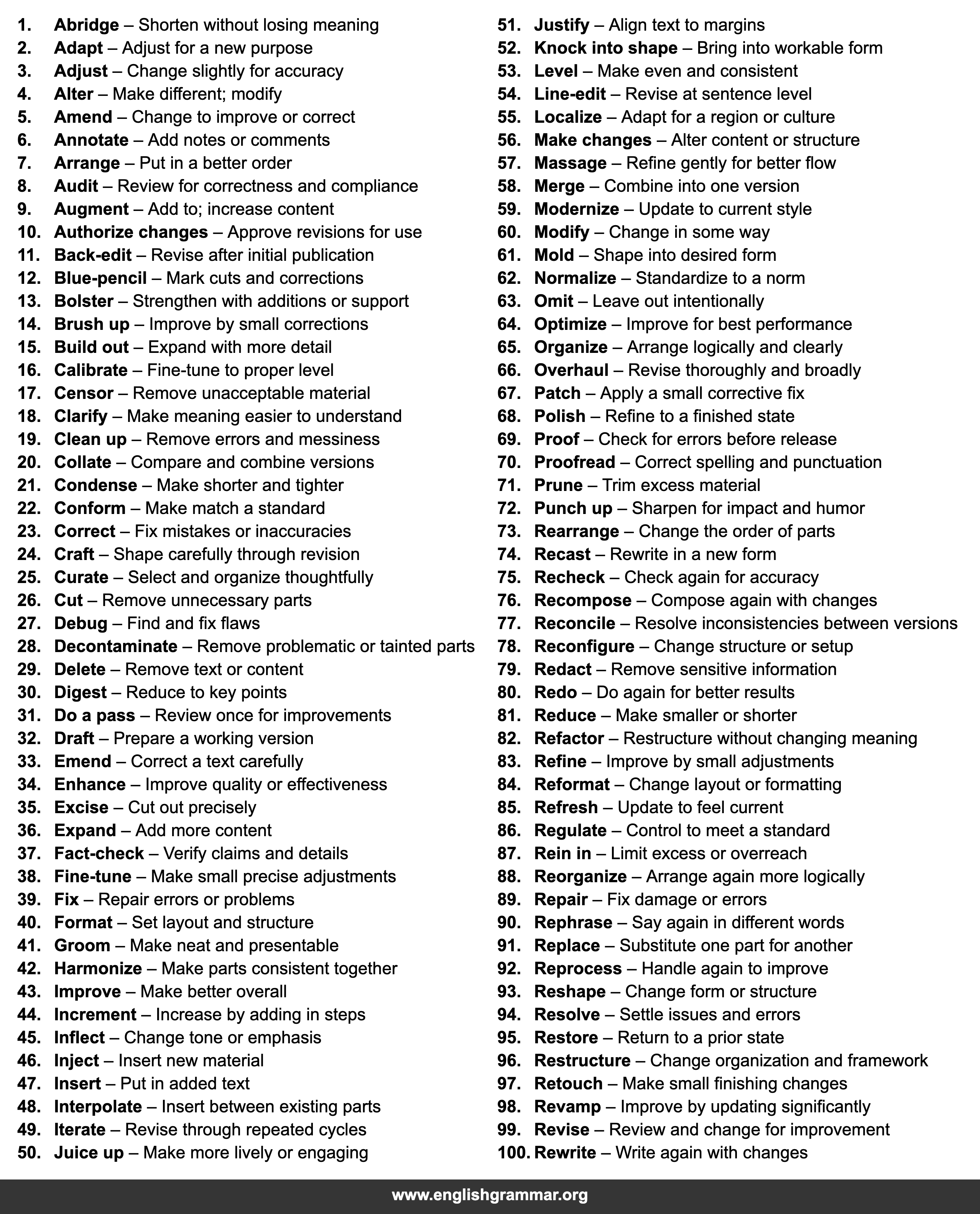 | 100. | Rewrite | Write again with changes |