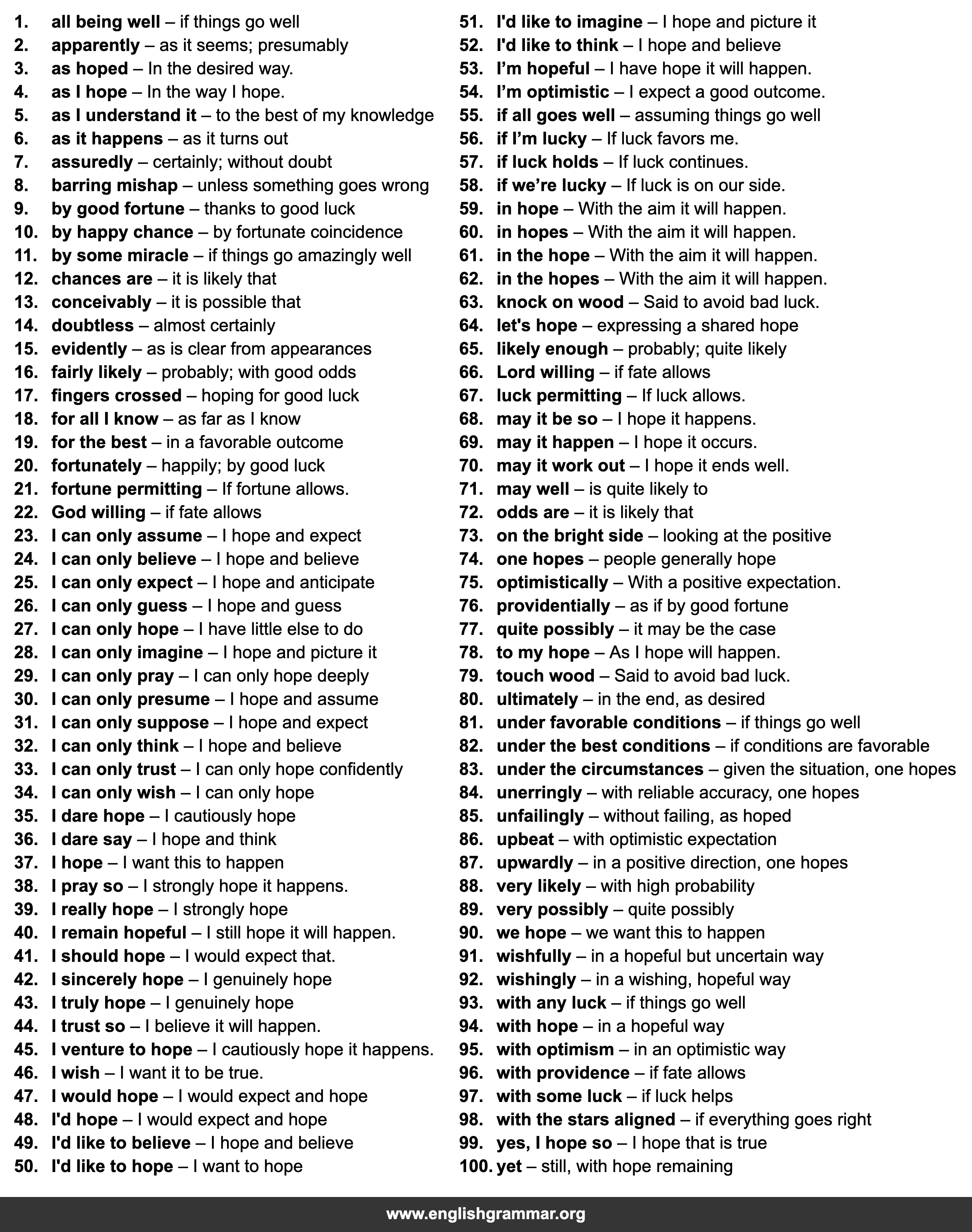 | 53. | I’m hopeful | I have hope it will happen. |