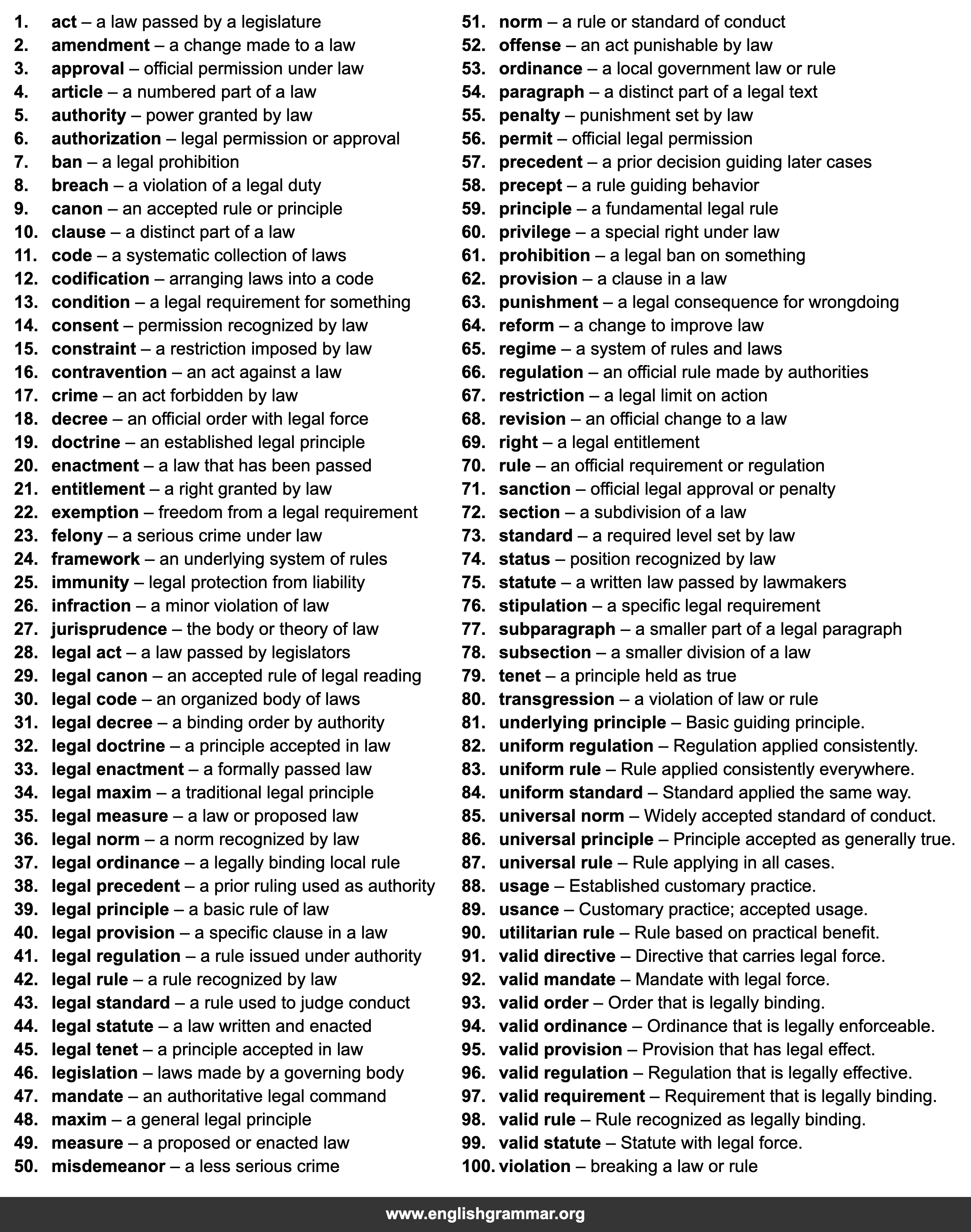 | 98. | valid rule | Rule recognized as legally binding. |