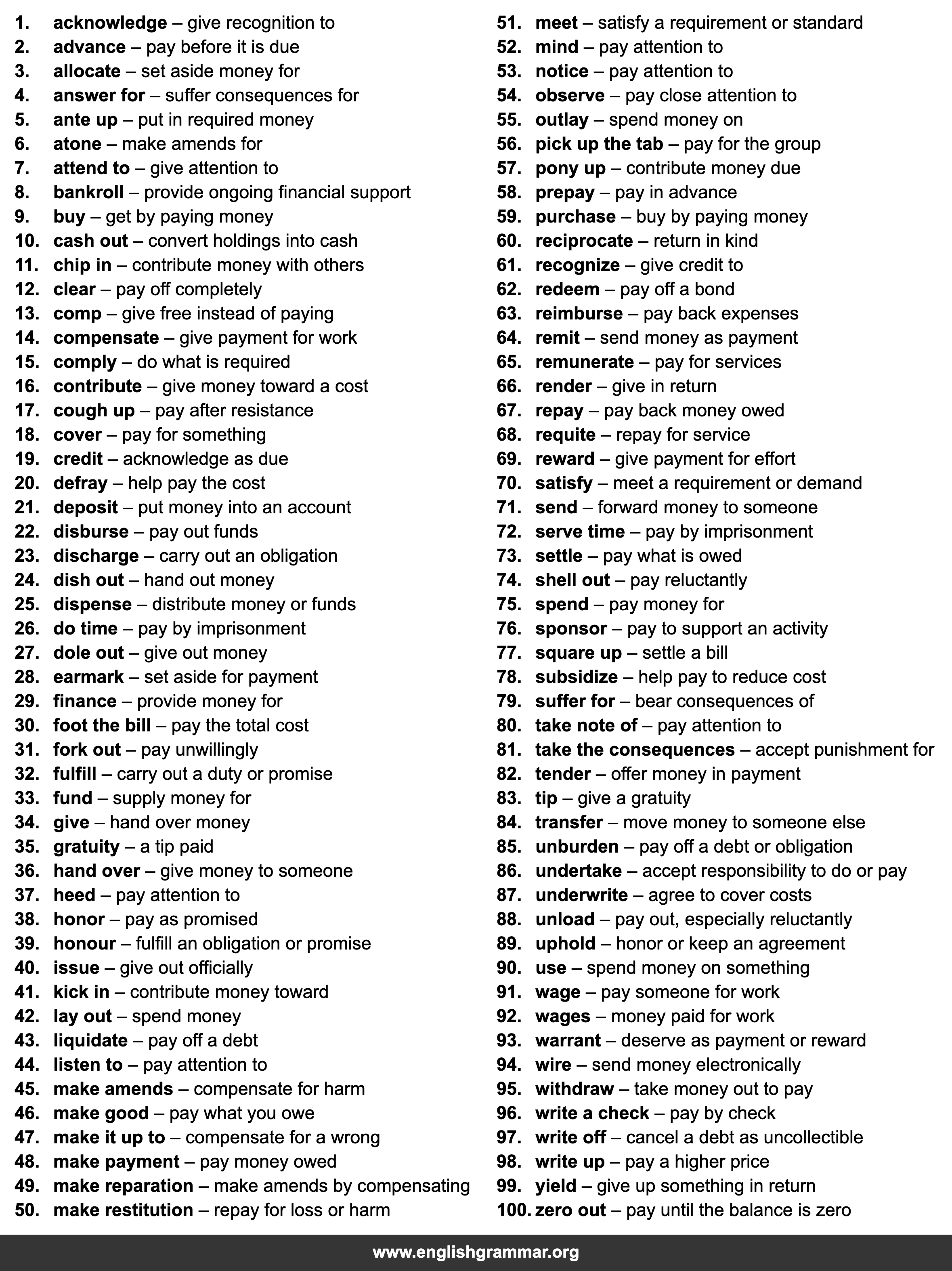 | 48. | make payment | pay money owed |
