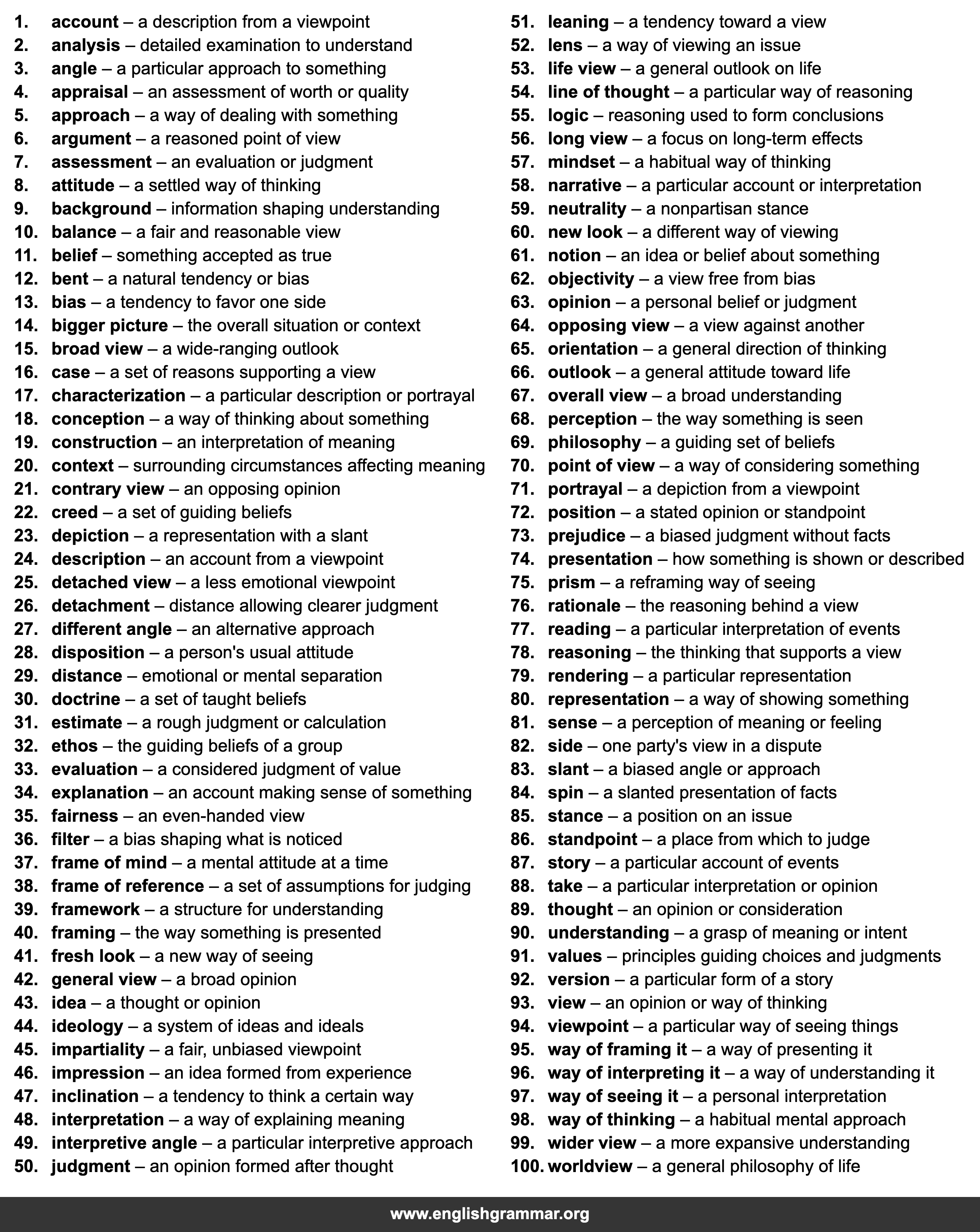 | 45. | impartiality | a fair, unbiased viewpoint |