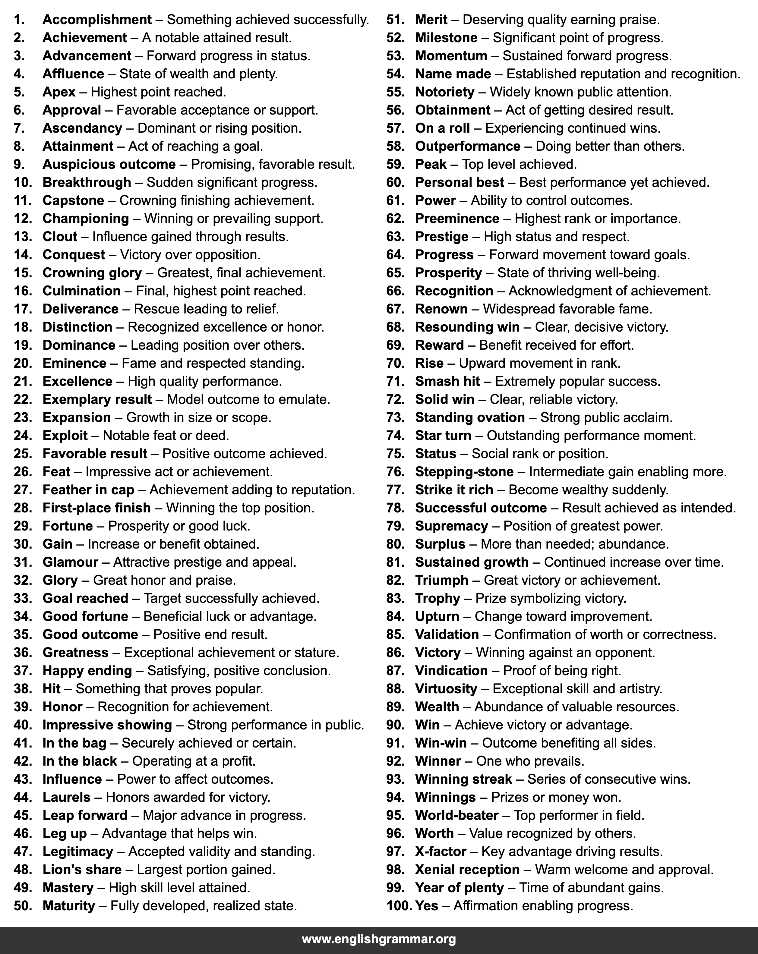 | 1. | Accomplishment | Something achieved successfully. |