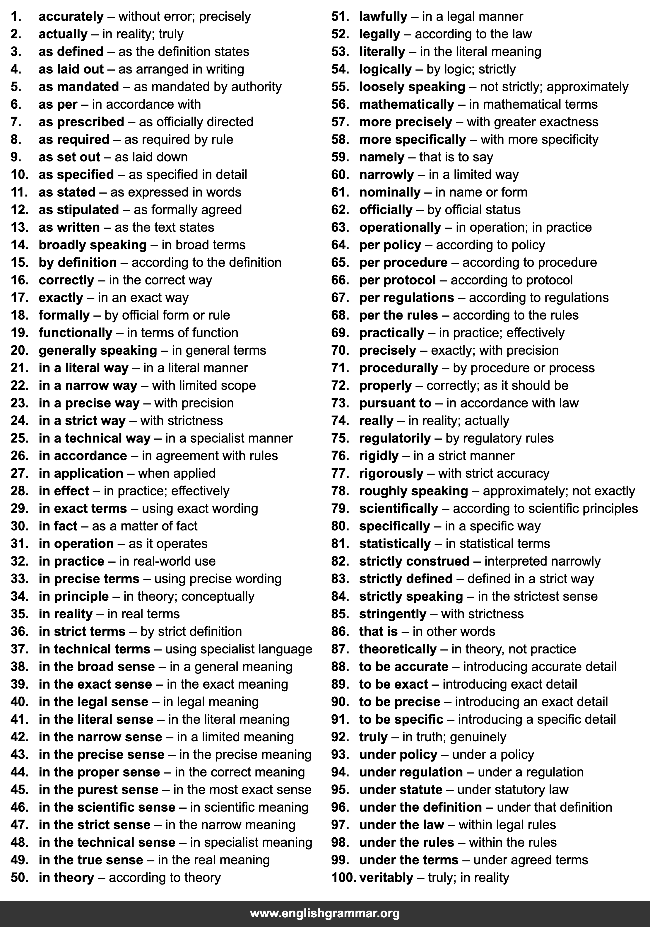 | 83. | strictly defined | defined in a strict way |