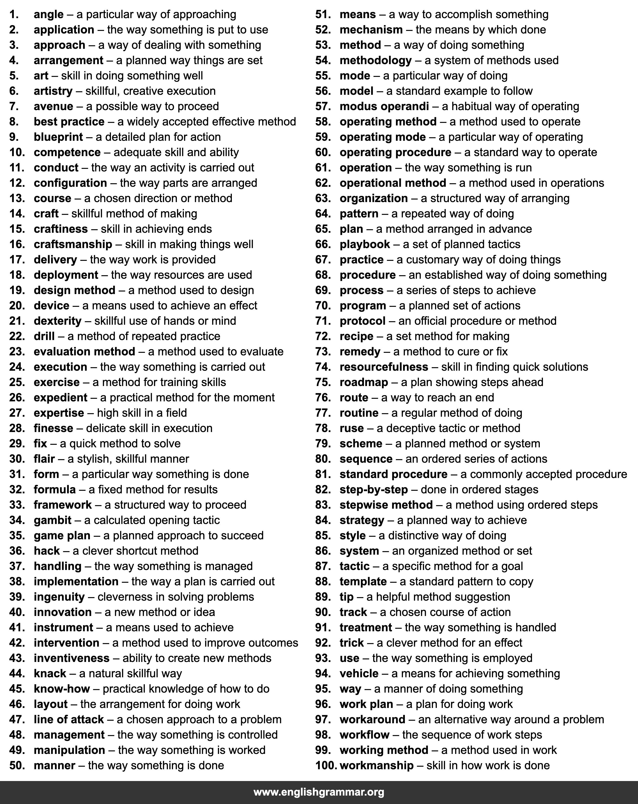 | 51. | means | a way to accomplish something |