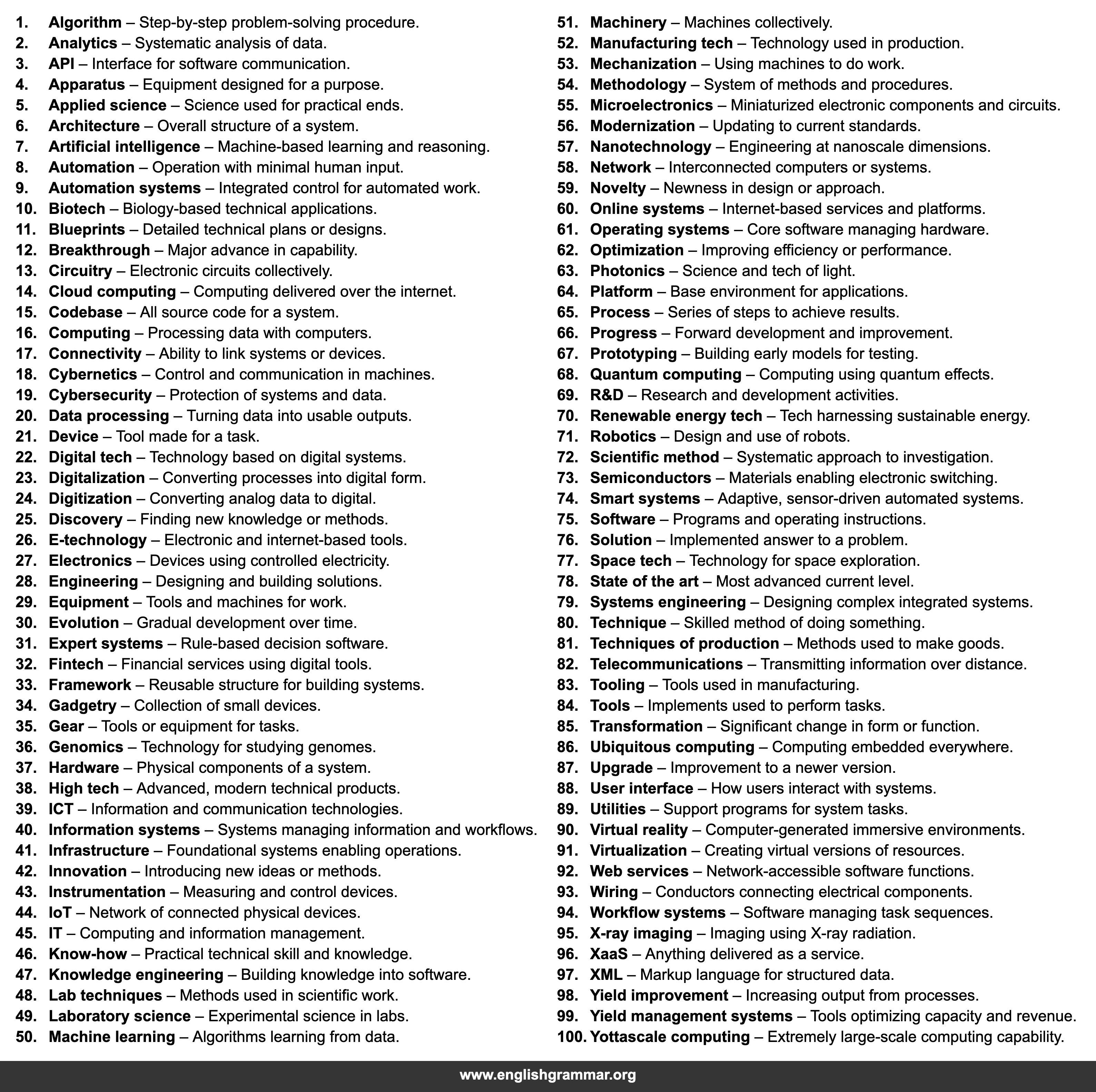 | 46. | Know-how | Practical technical skill and knowledge. |