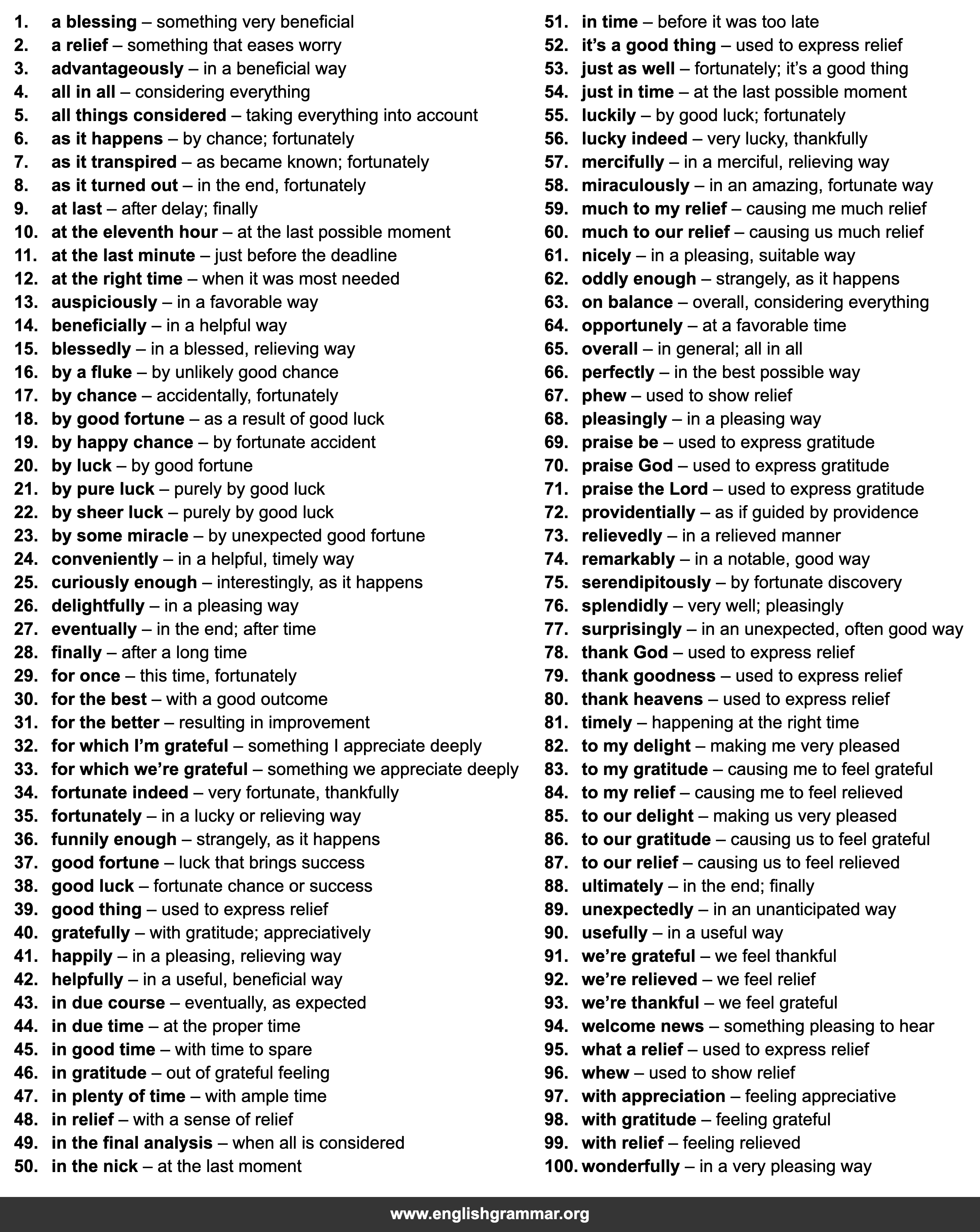 | 53. | just as well | fortunately; it’s a good thing |