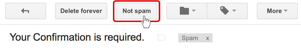 - Gmail user? Select the email in your Spam folder and click ‘Not spam’.