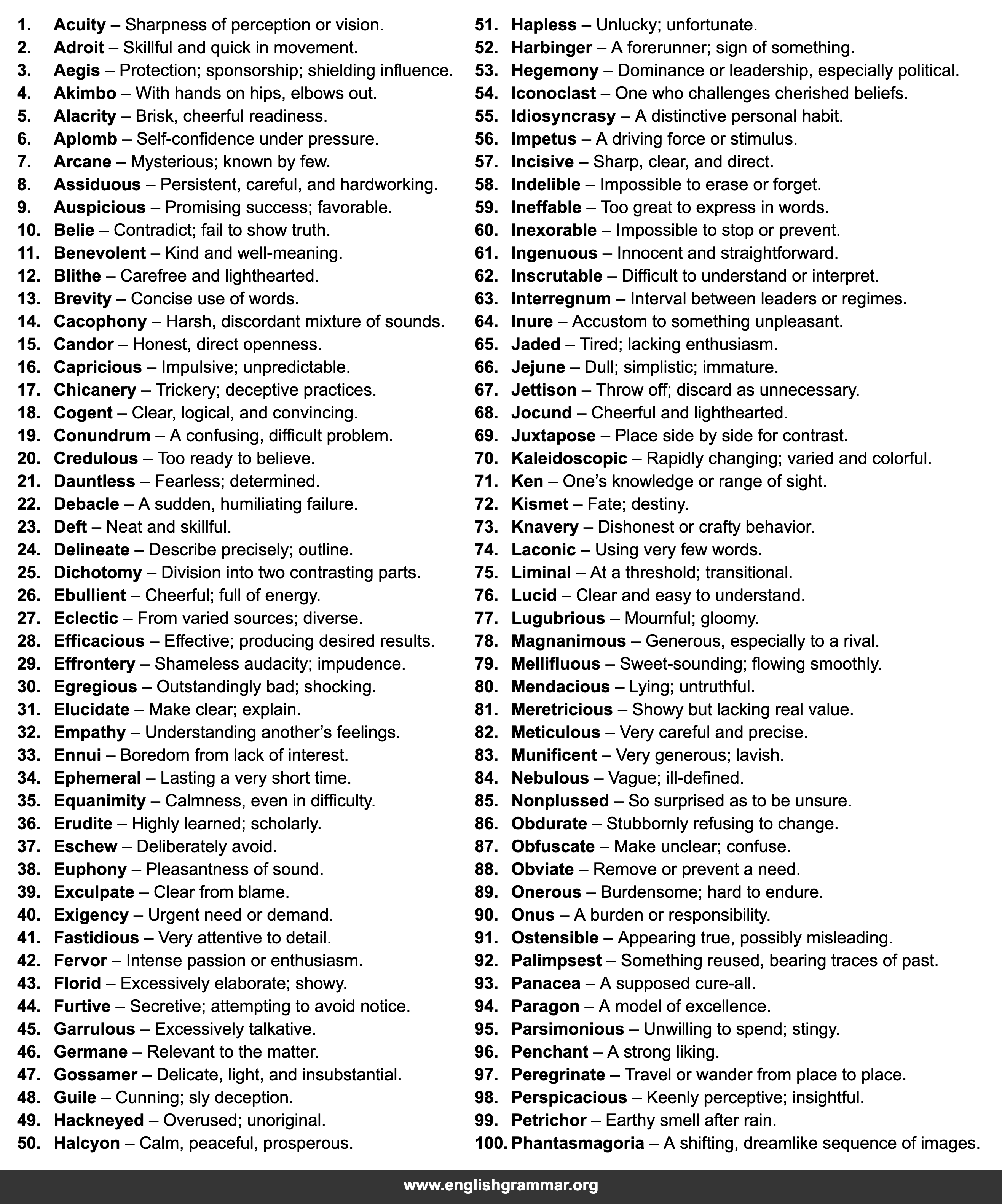 | 59. | Ineffable | Too great to express in words. |