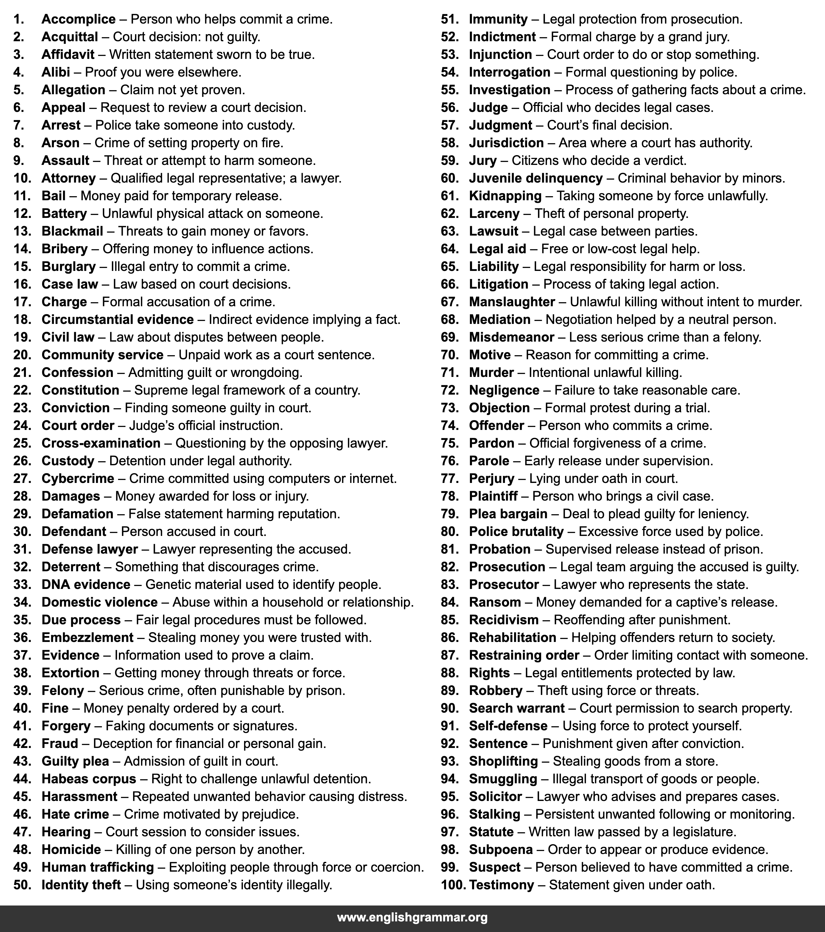 | 1. | Accomplice | Person who helps commit a crime. |