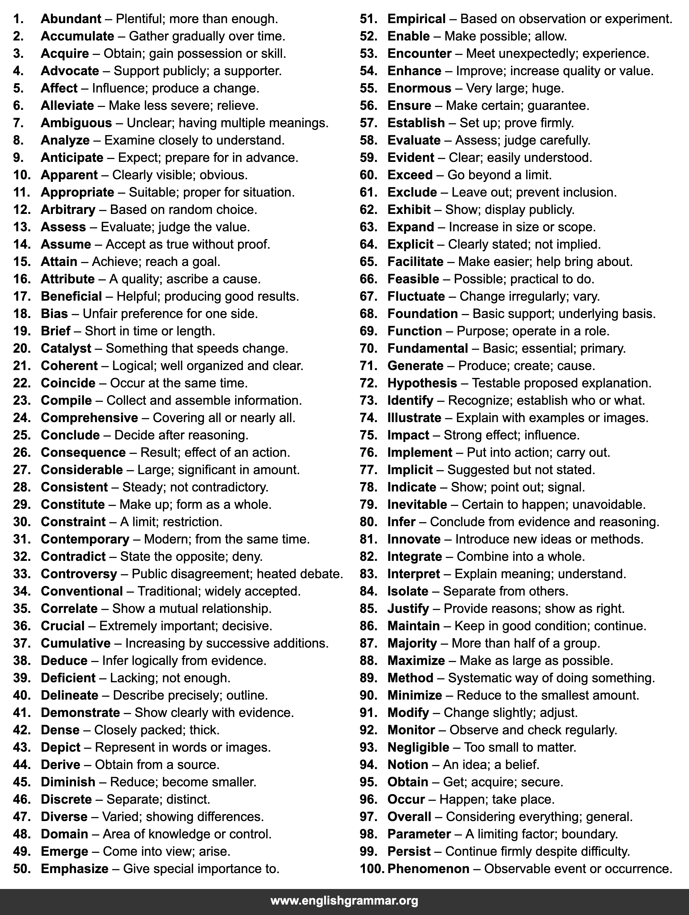 | 41. | Demonstrate | Show clearly with evidence. |
