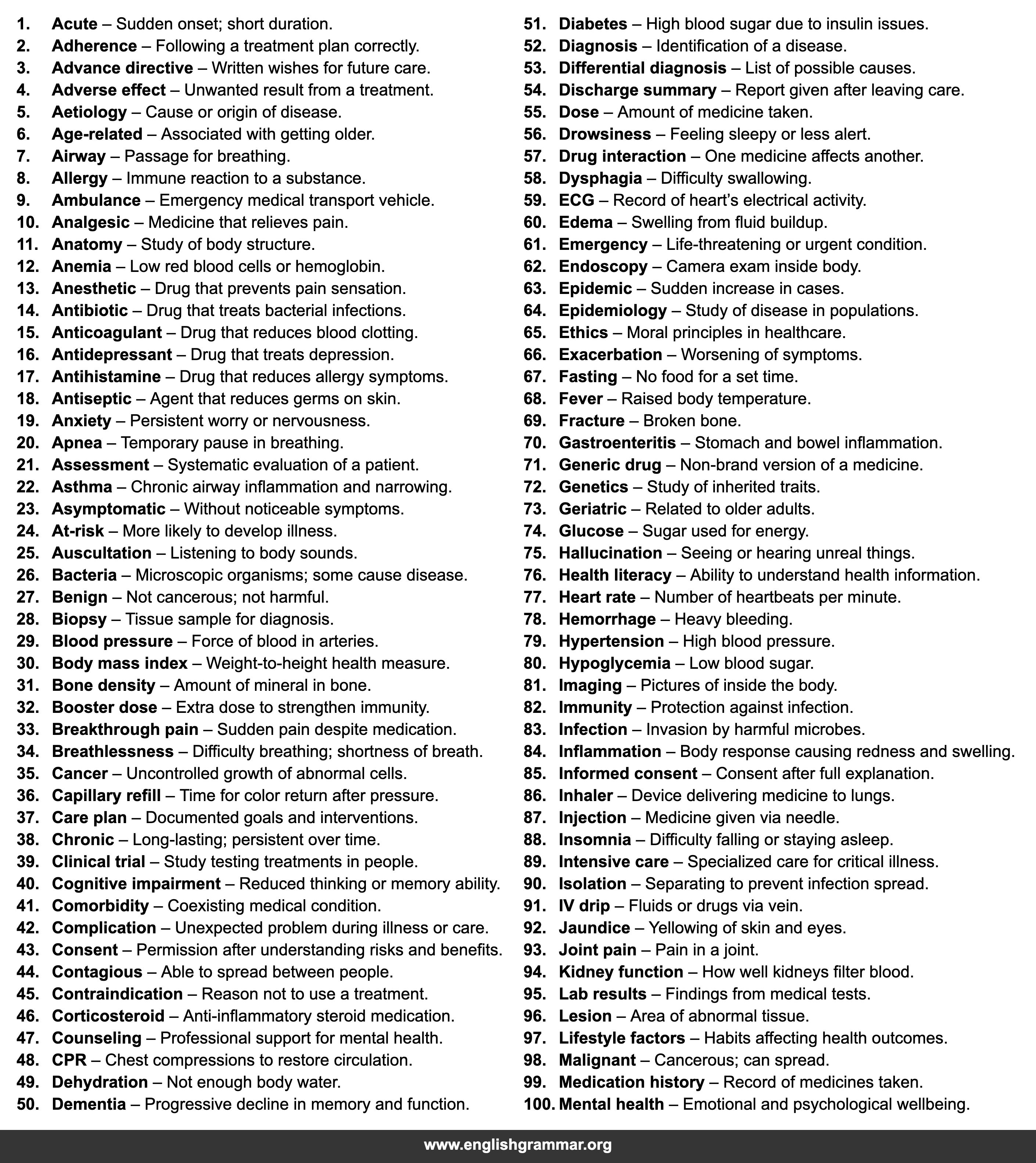 | 38. | Chronic | Long-lasting; persistent over time. |