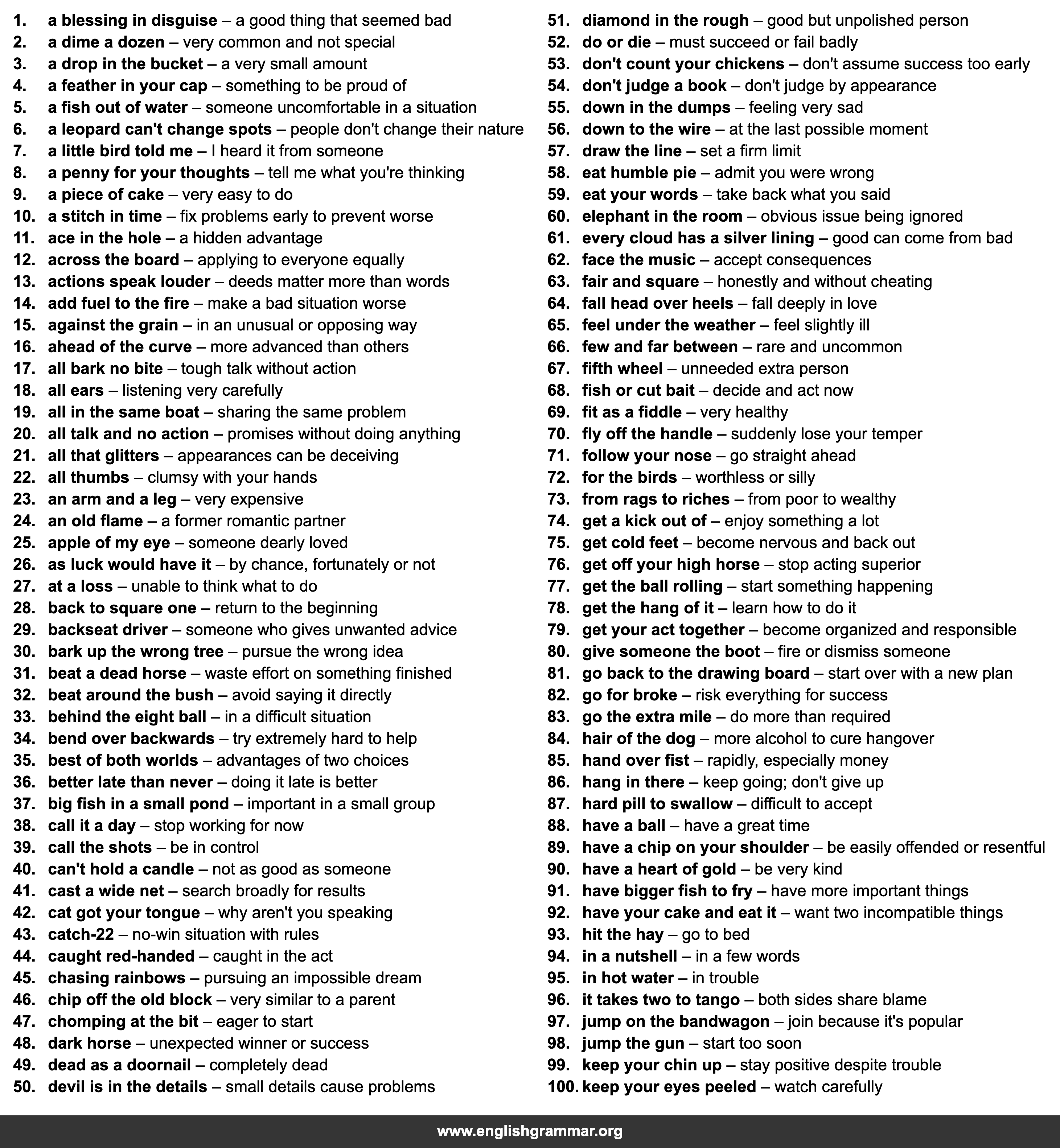 | 8. | a penny for your thoughts | tell me what you’re thinking |