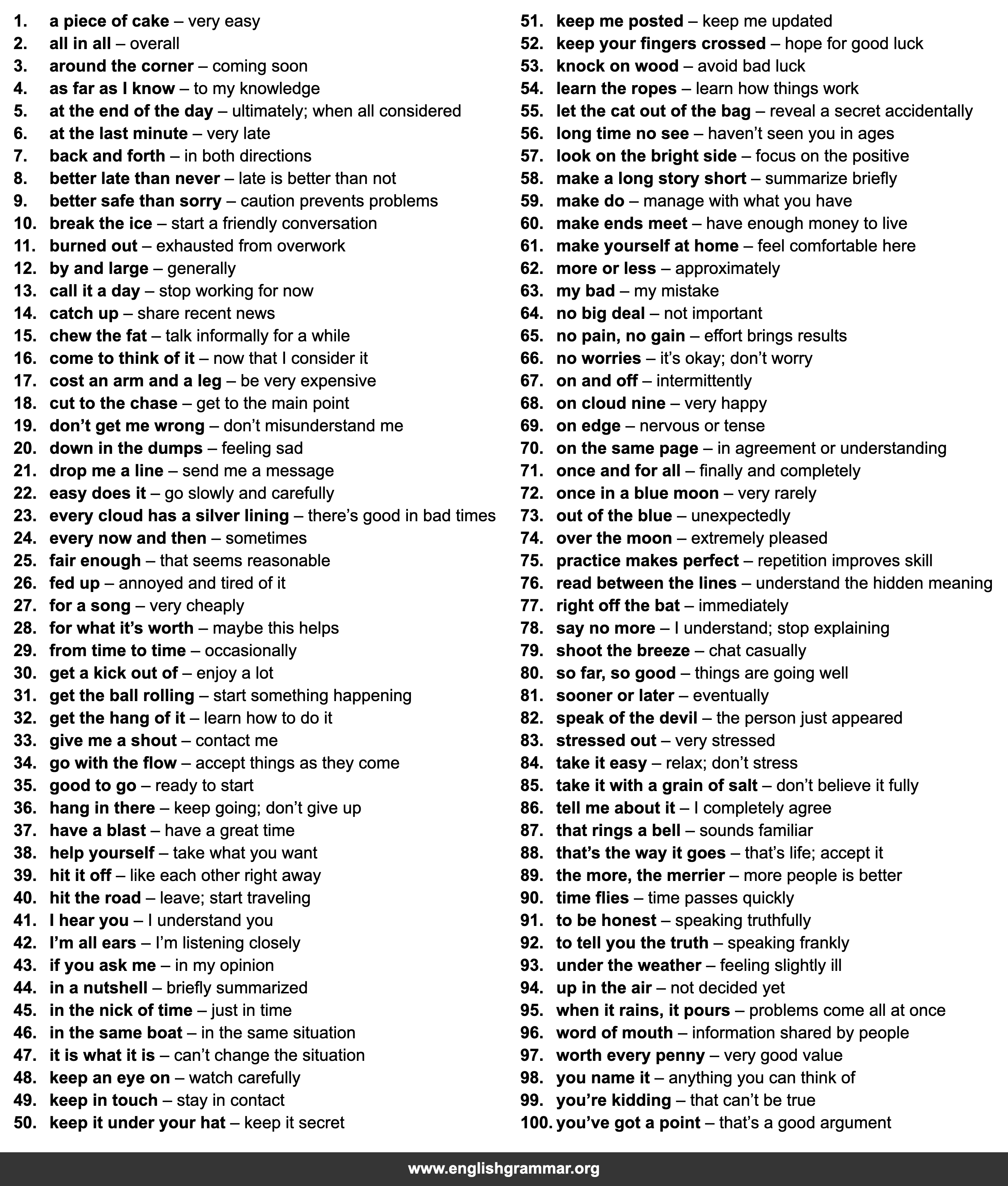 | 85. | take it with a grain of salt | don’t believe it fully |