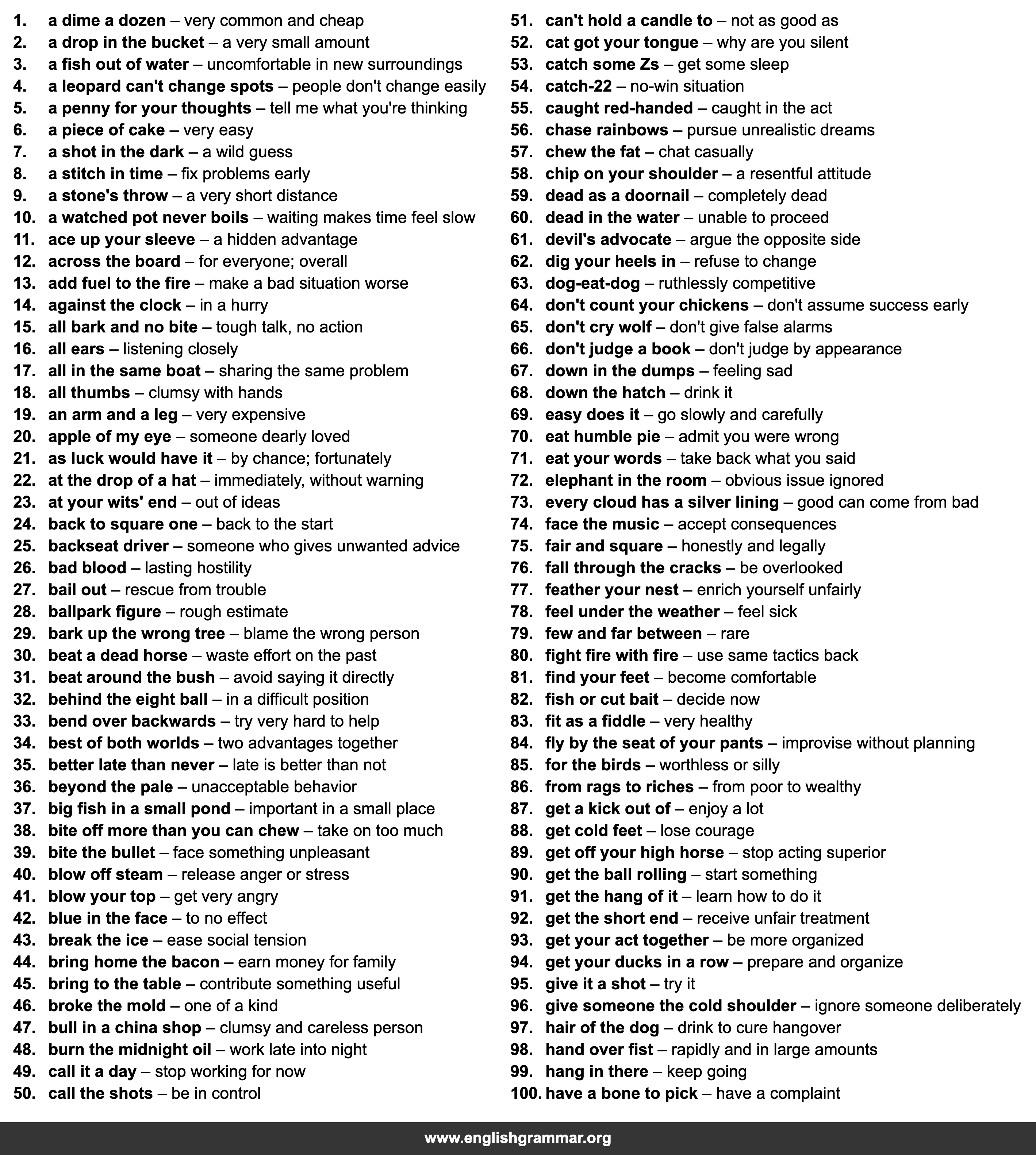 | 5. | a penny for your thoughts | tell me what you’re thinking |