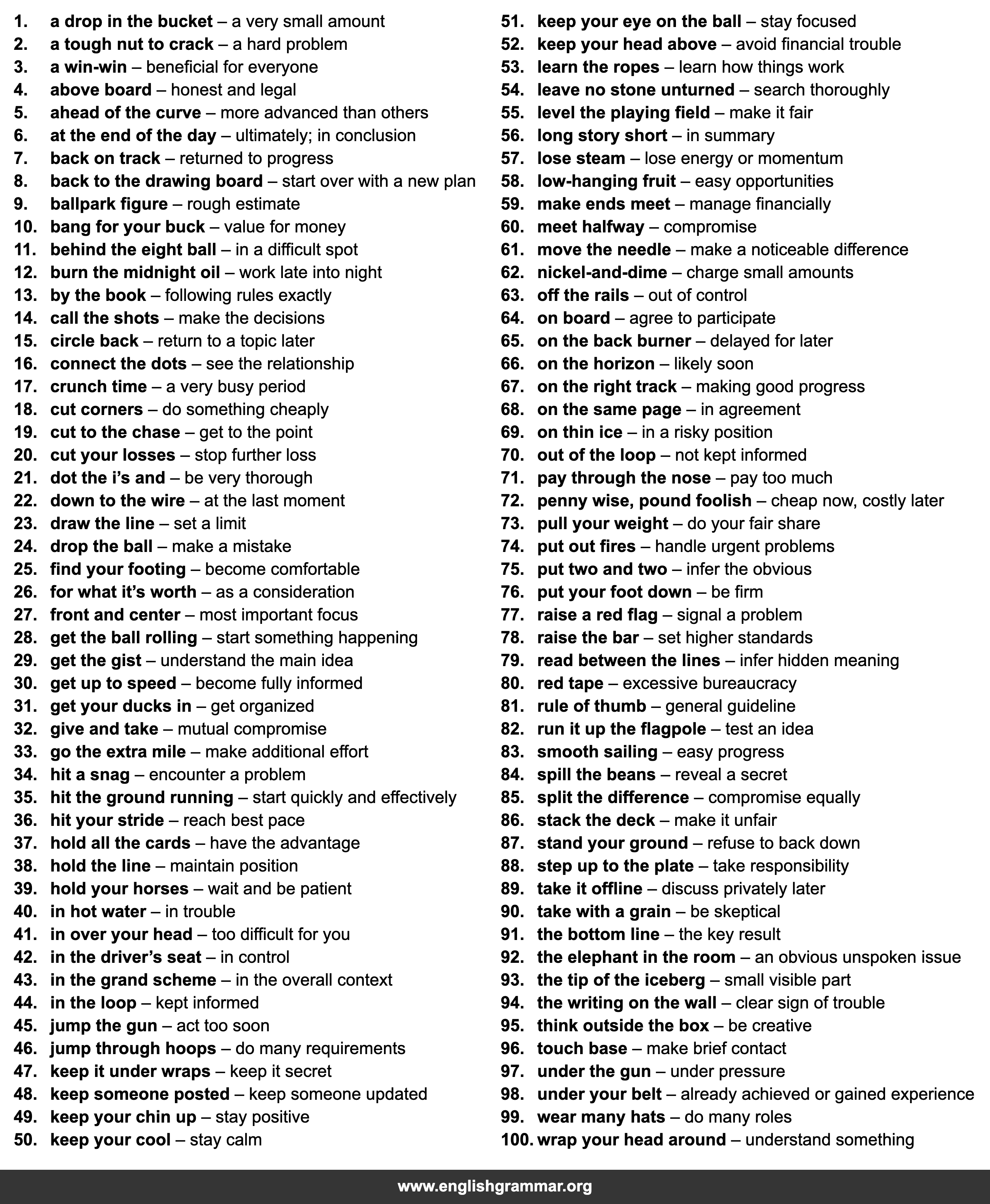 | 51. | keep your eye on the ball | stay focused |