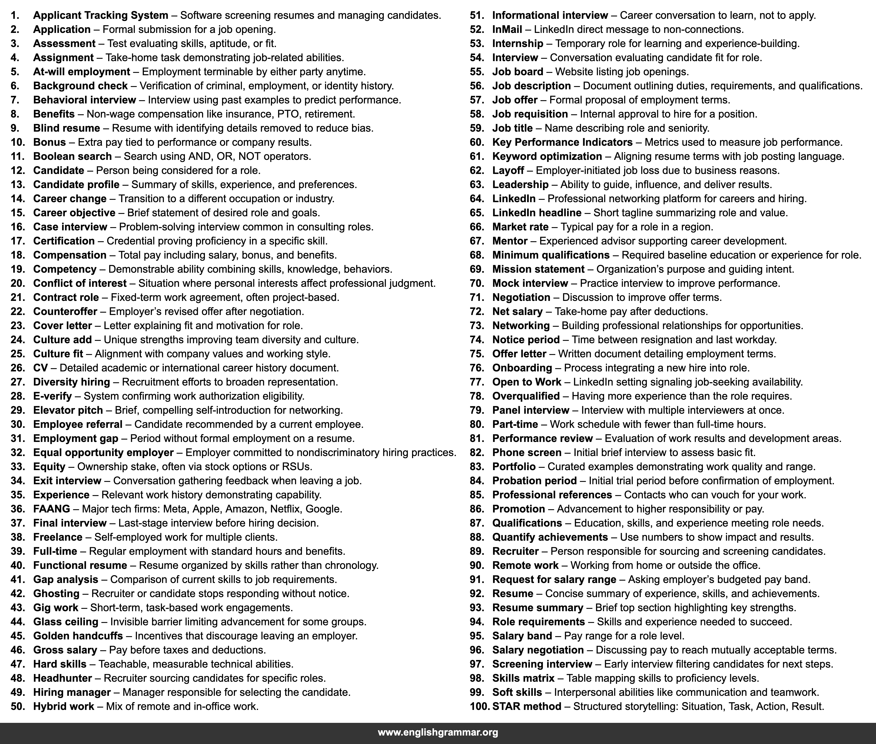 | 31. | Employment gap | Period without formal employment on a resume. |