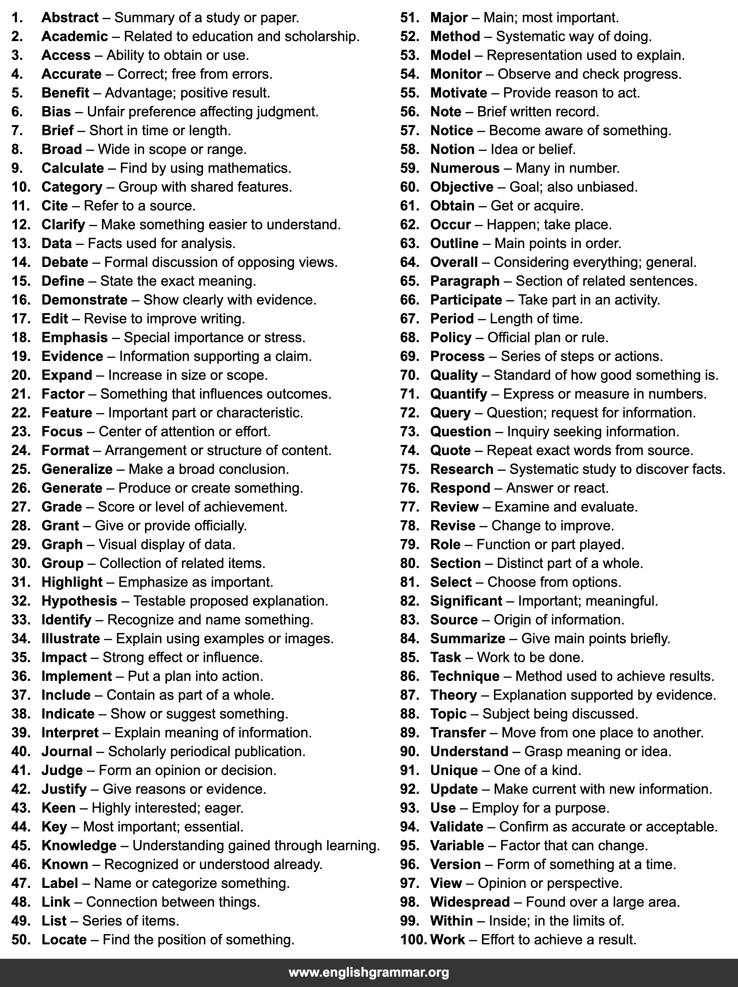 | 16. | Demonstrate | Show clearly with evidence. |