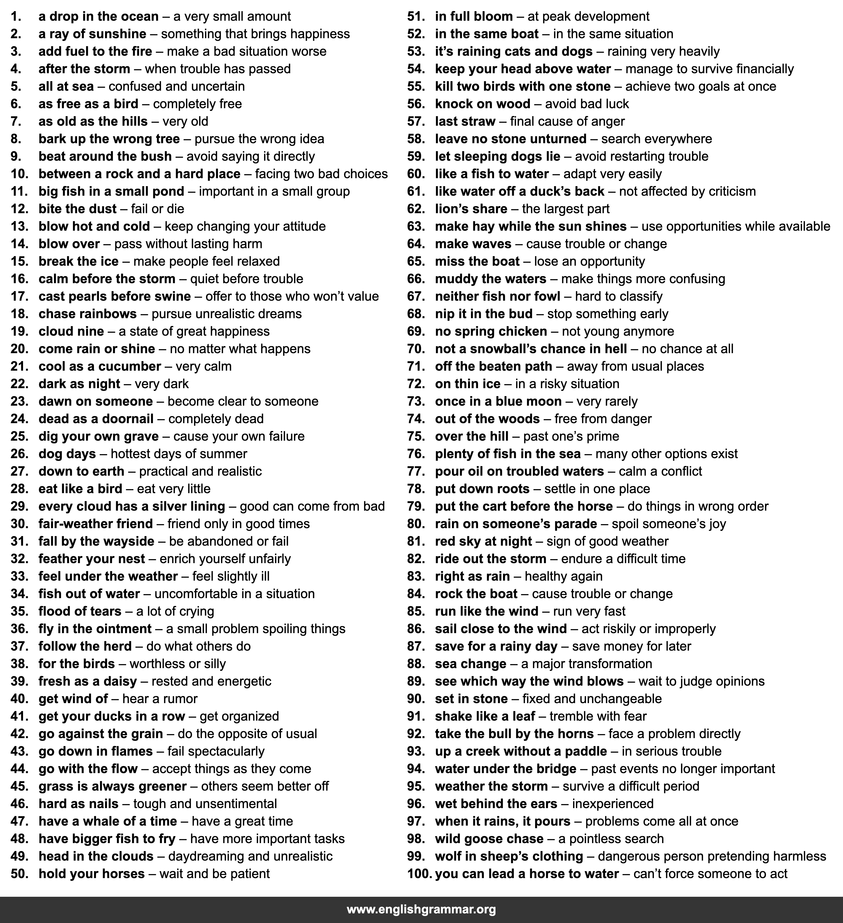 | 100. | you can lead a horse to water | can’t force someone to act |