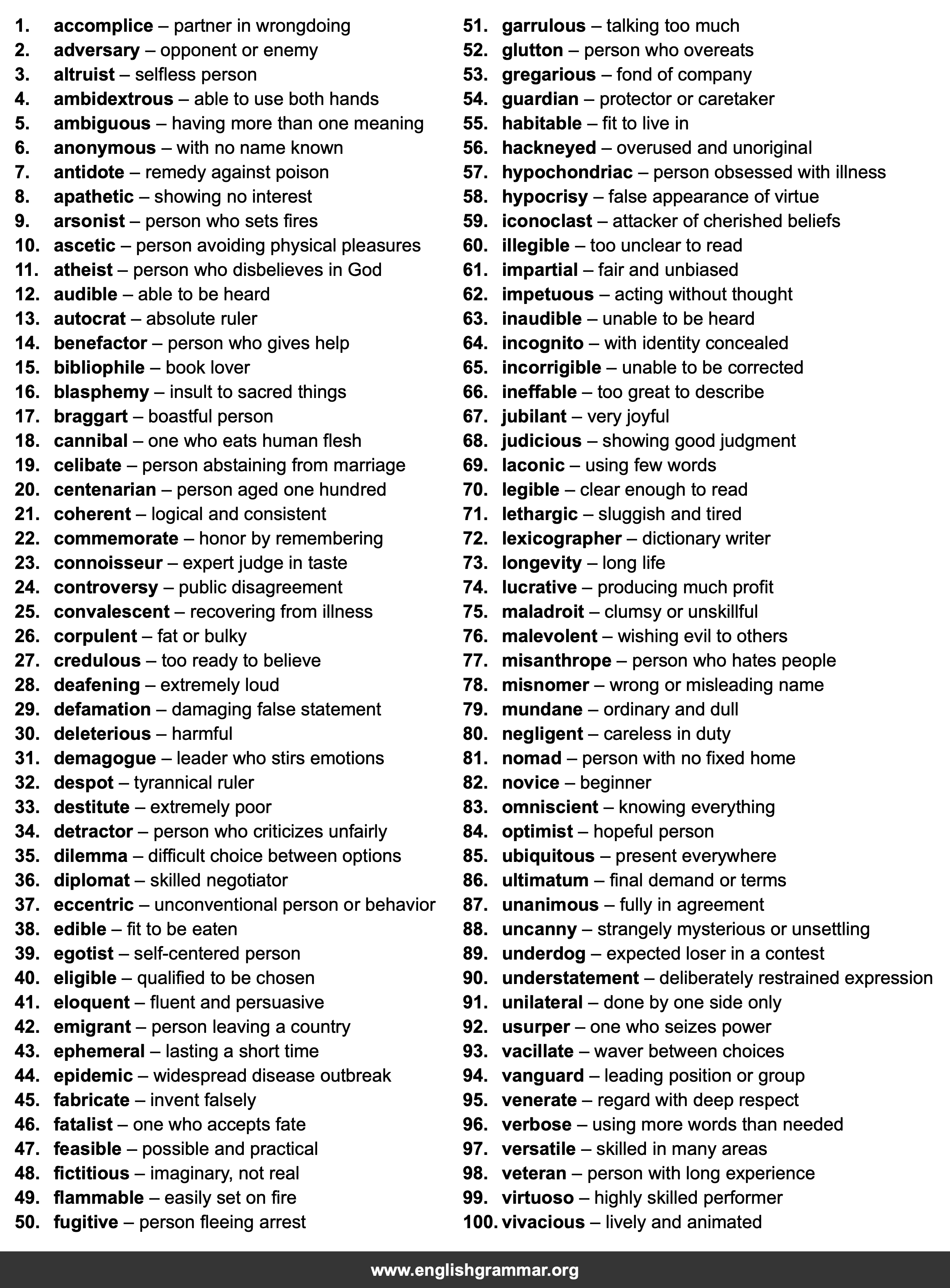 | 51. | garrulous | talking too much |