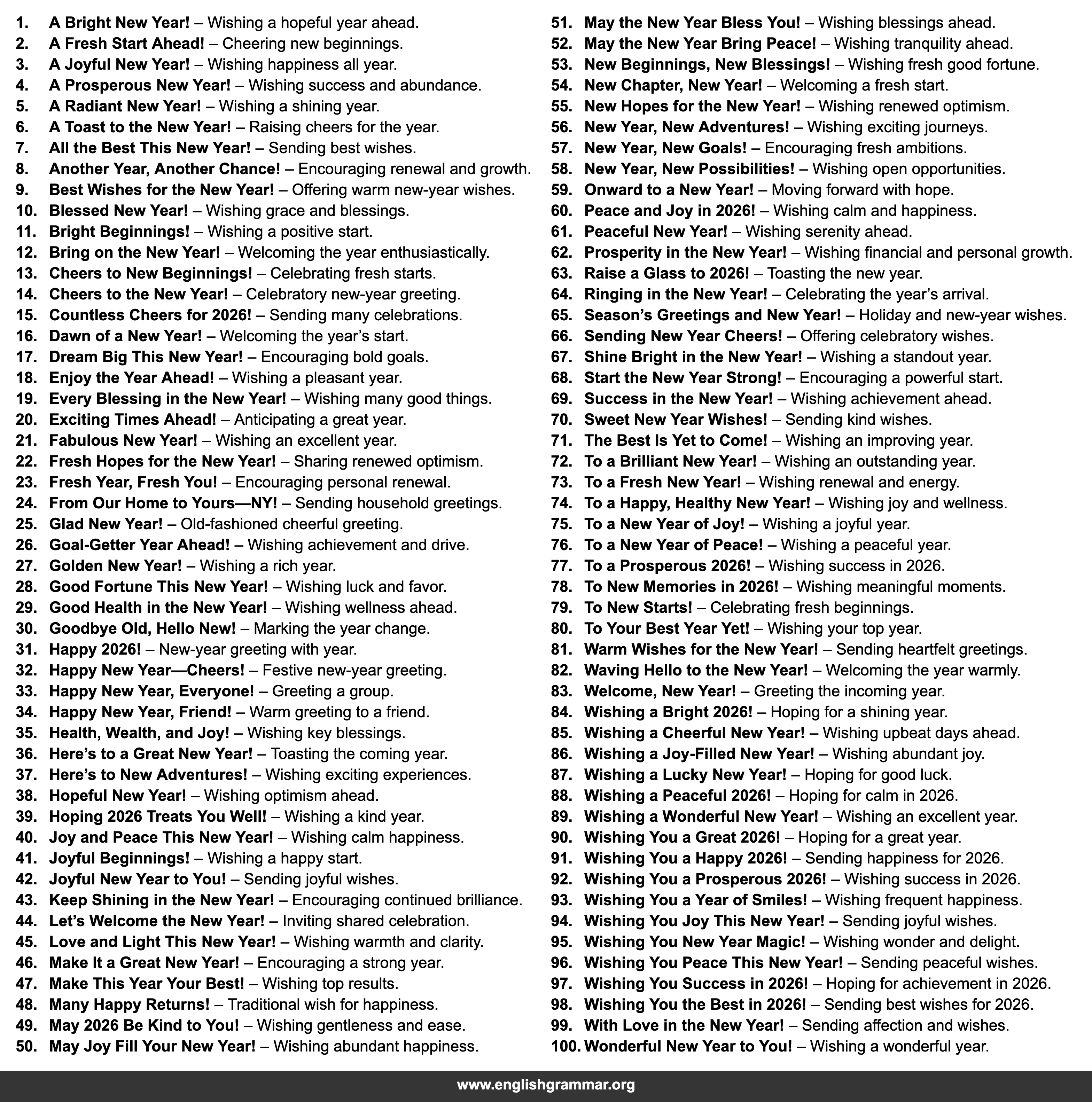 | 90. | Wishing You a Great 2026! | Hoping for a great year. |