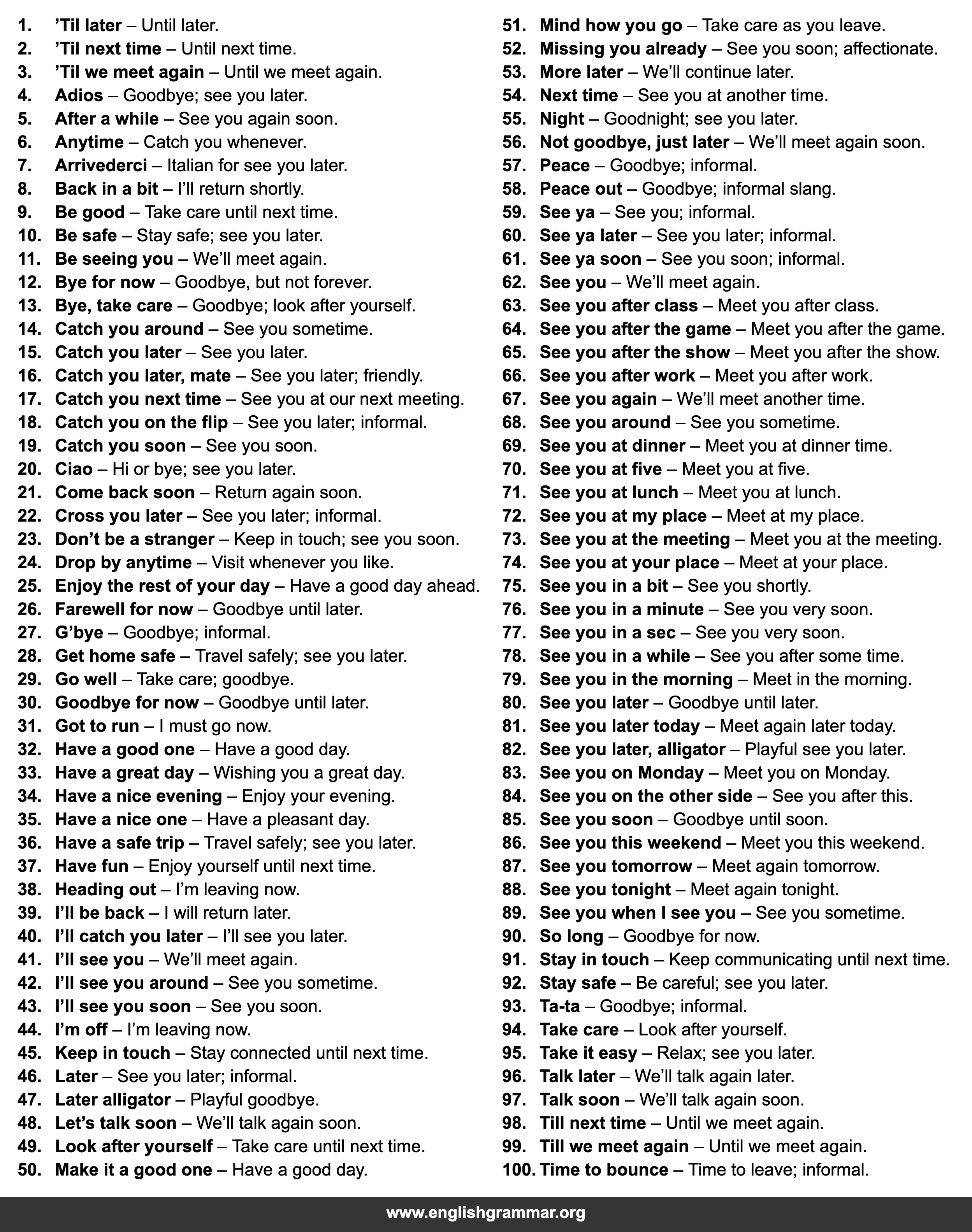 | 56. | Not goodbye, just later | We’ll meet again soon. |
