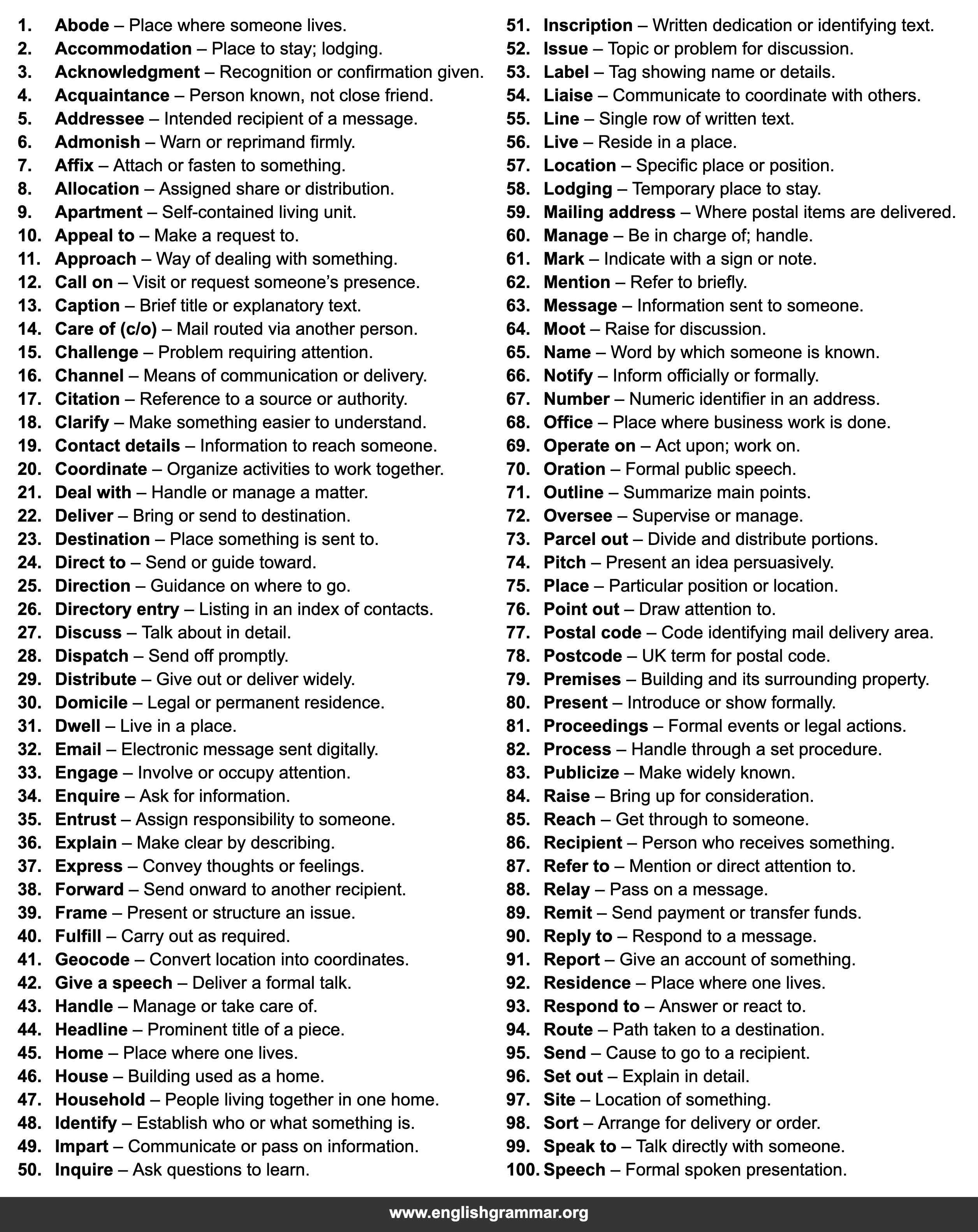 | 14. | Care of (c/o) | Mail routed via another person. |
