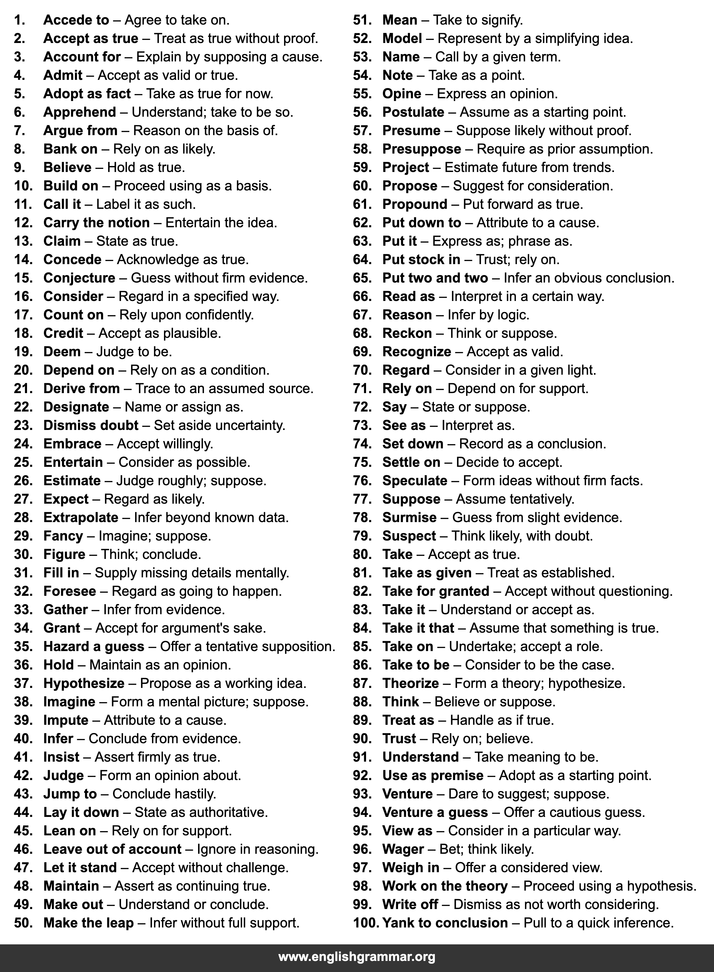 | 23. | Dismiss doubt | Set aside uncertainty. |