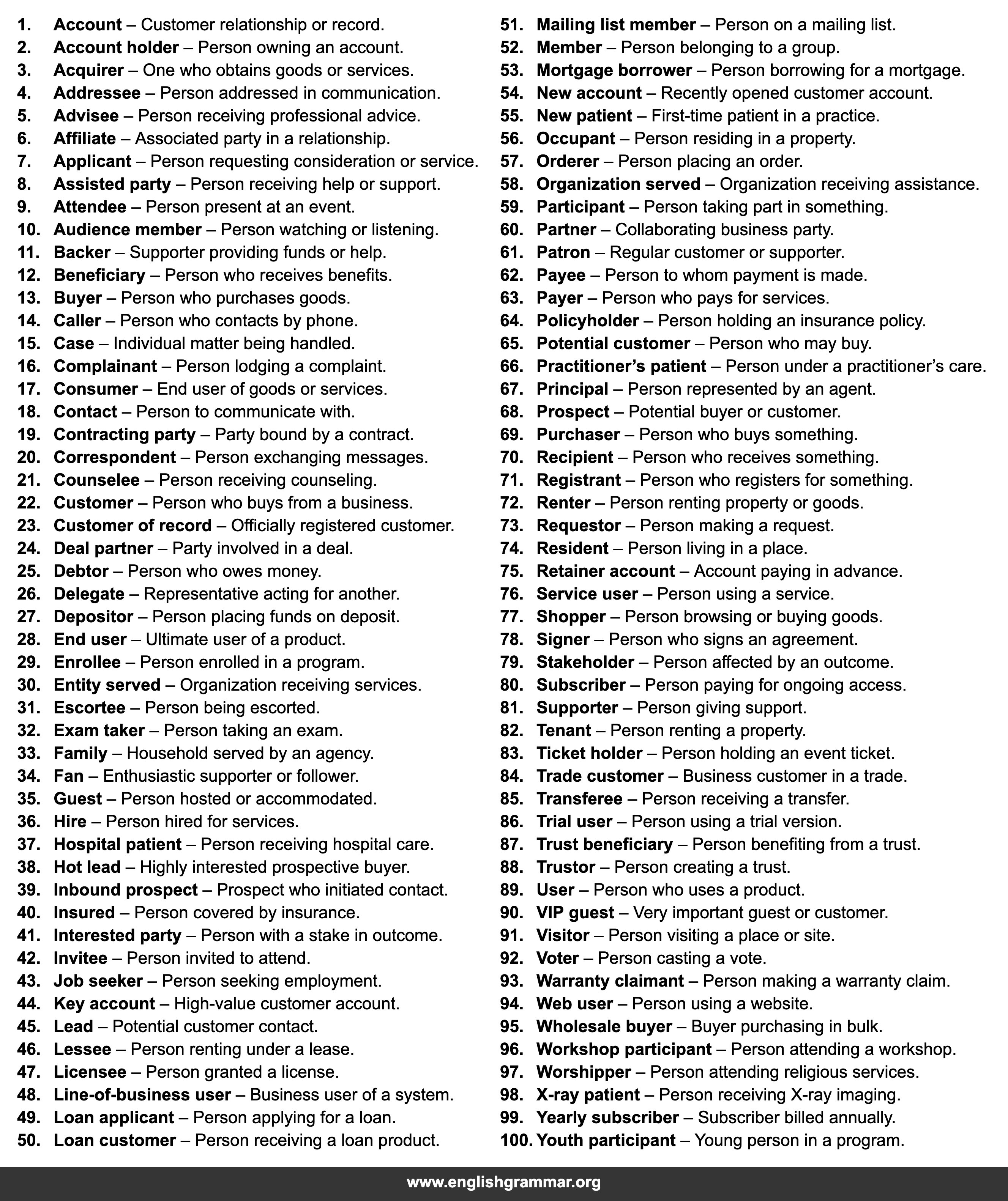 | 51. | Mailing list member | Person on a mailing list. |