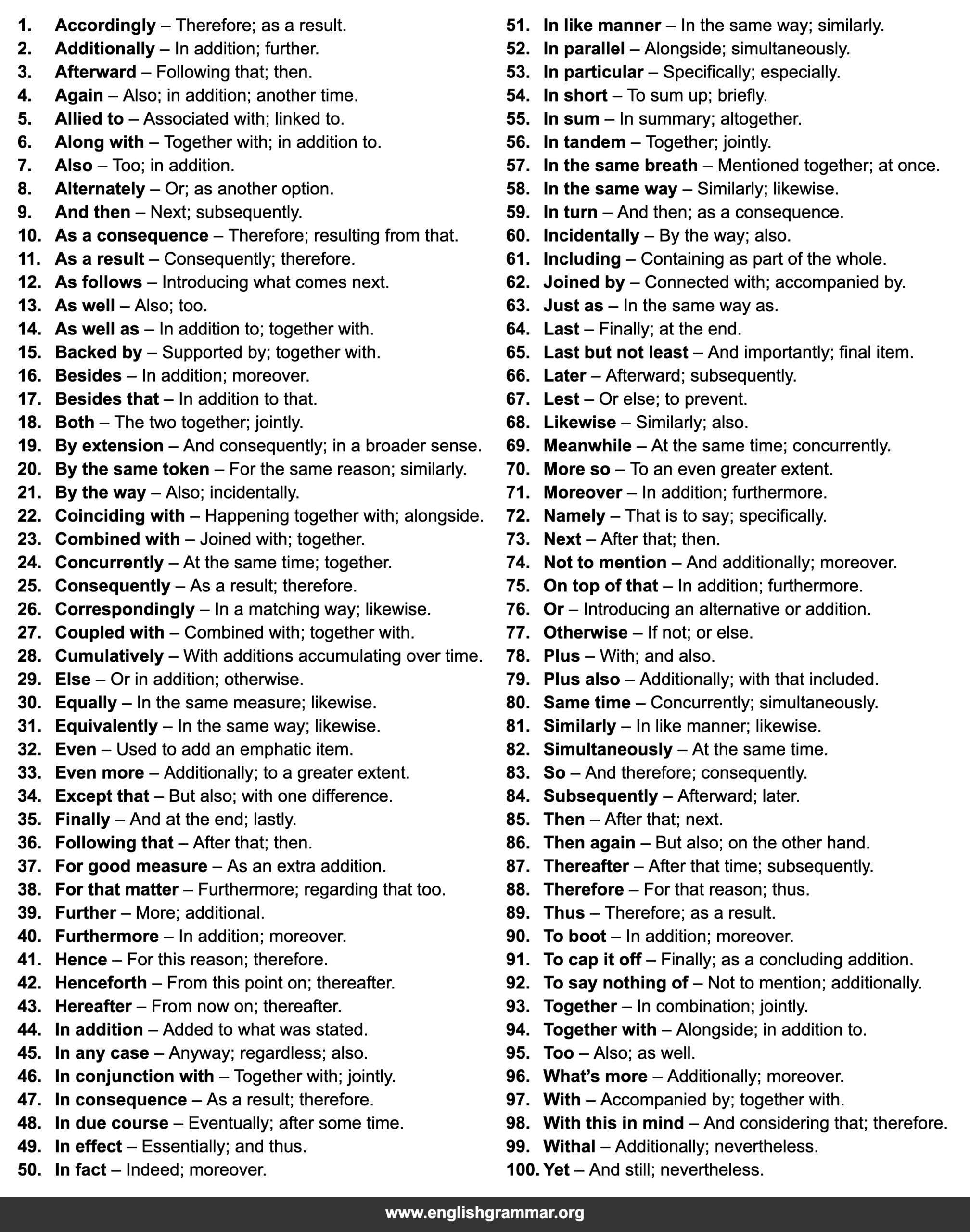 | 40. | Furthermore | In addition; moreover. |