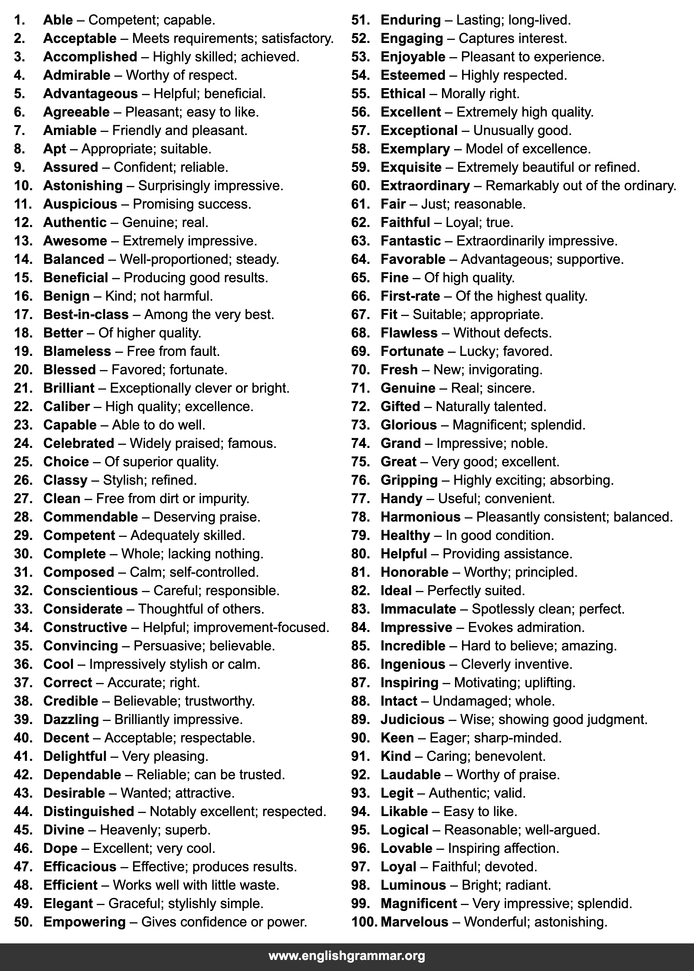 | 4. | Admirable | Worthy of respect. |