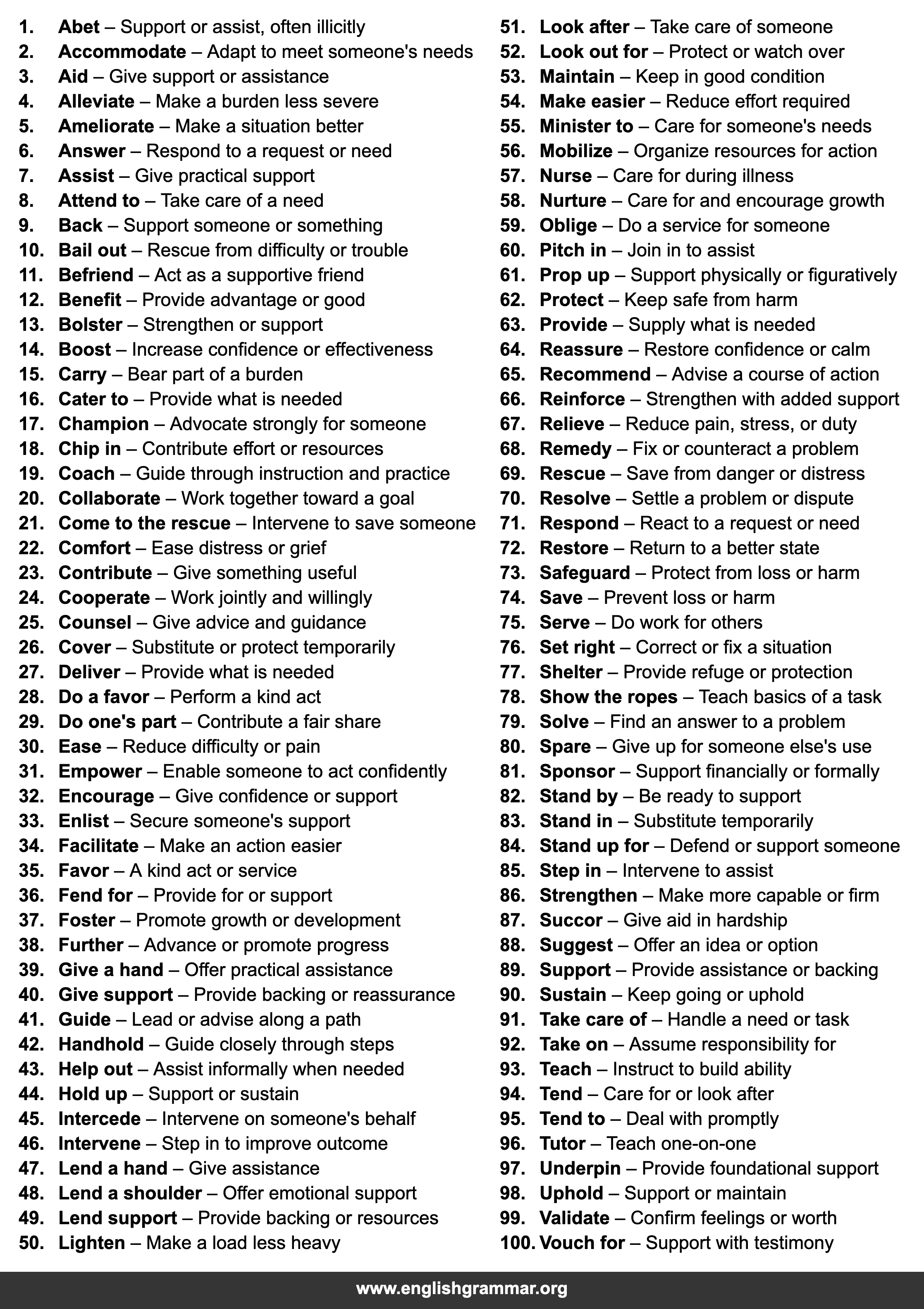 | 2. | Accommodate | Adapt to meet someone’s needs |