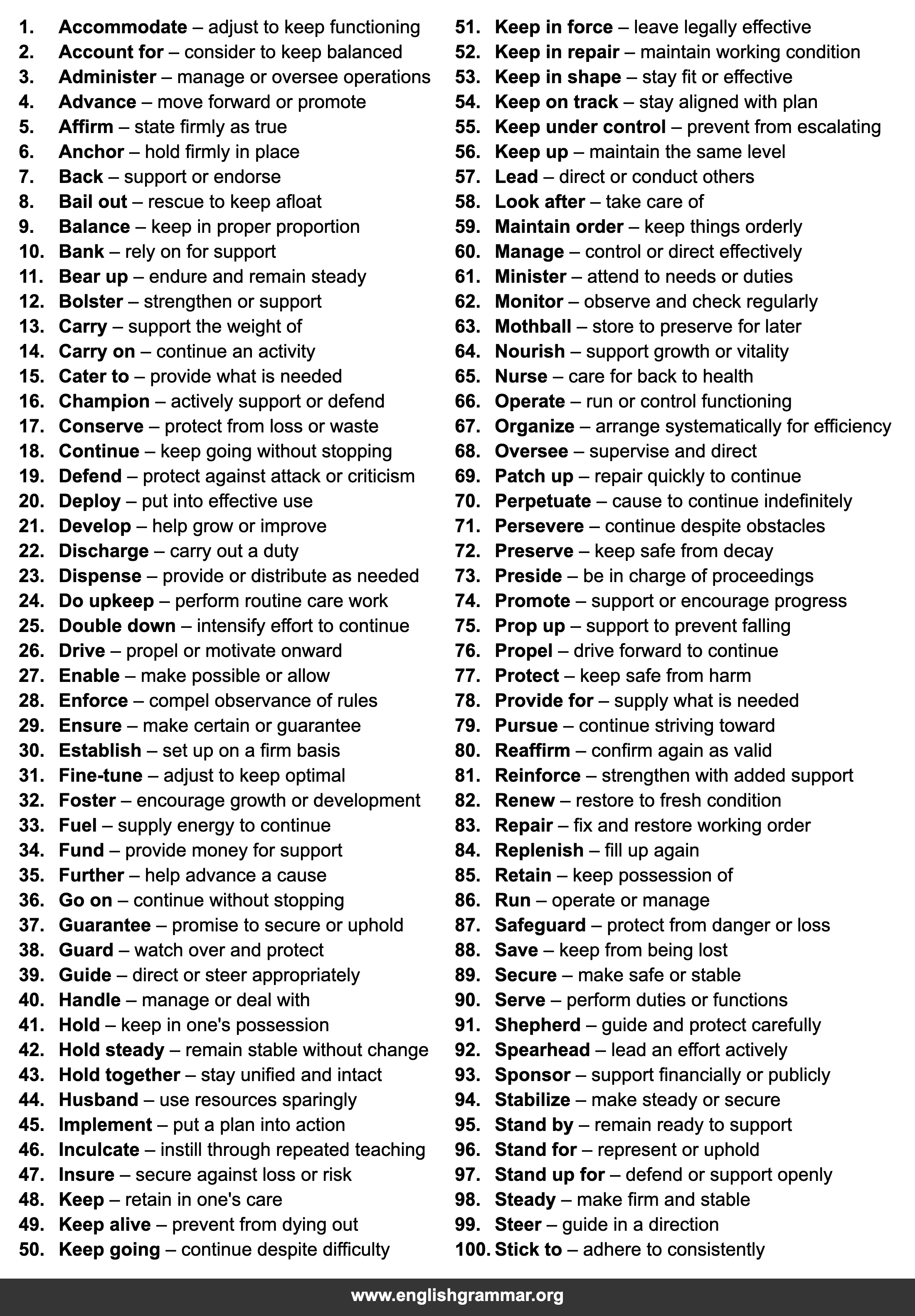 | 52. | Keep in repair | maintain working condition |