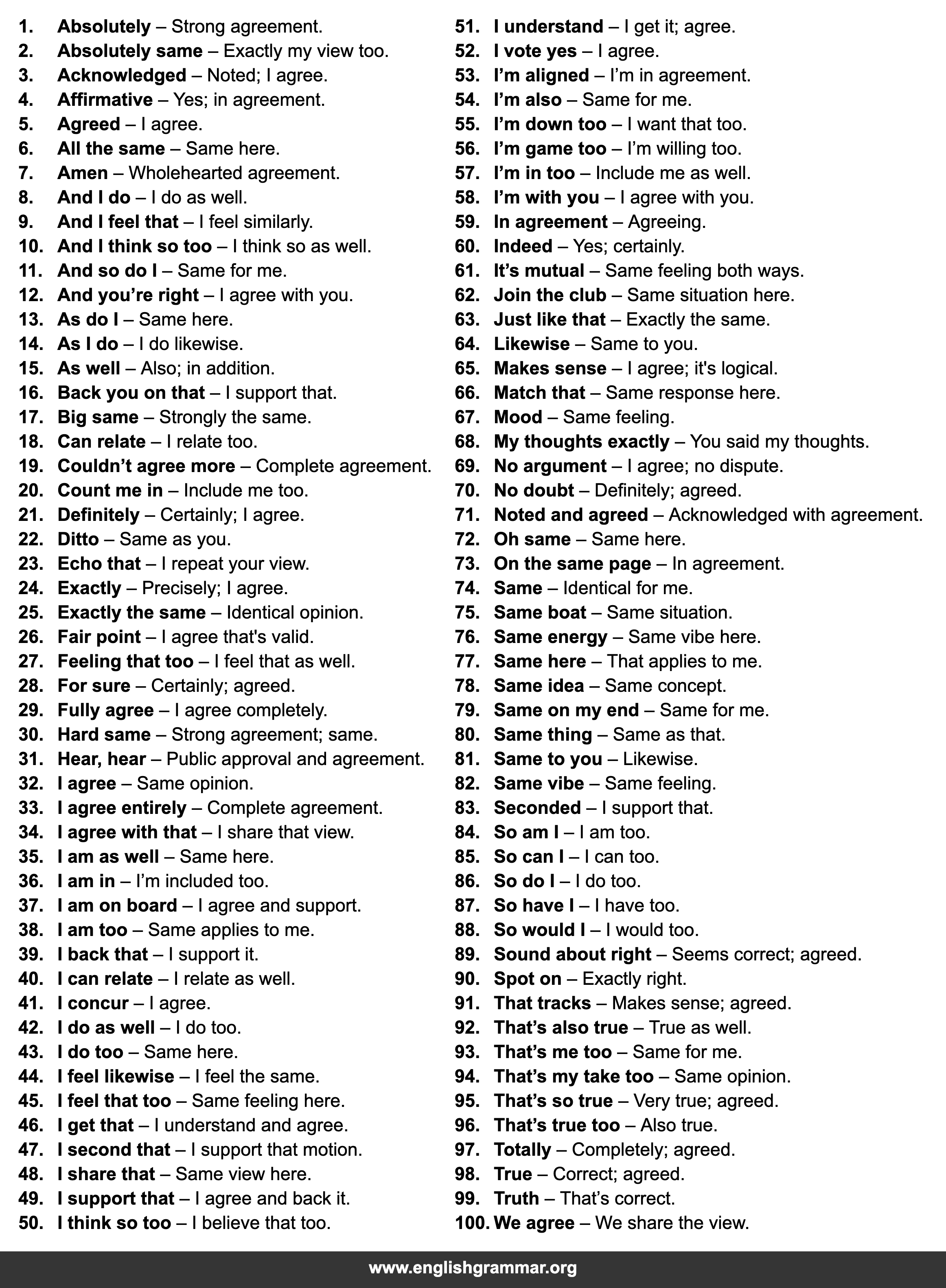| 71. | Noted and agreed | Acknowledged with agreement. |