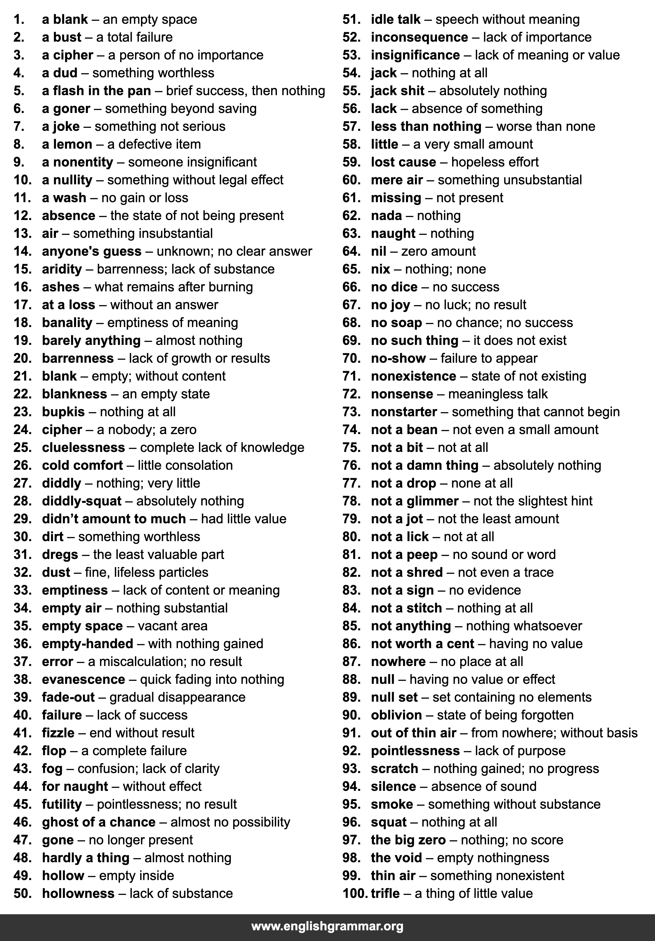 | 33. | emptiness | lack of content or meaning |