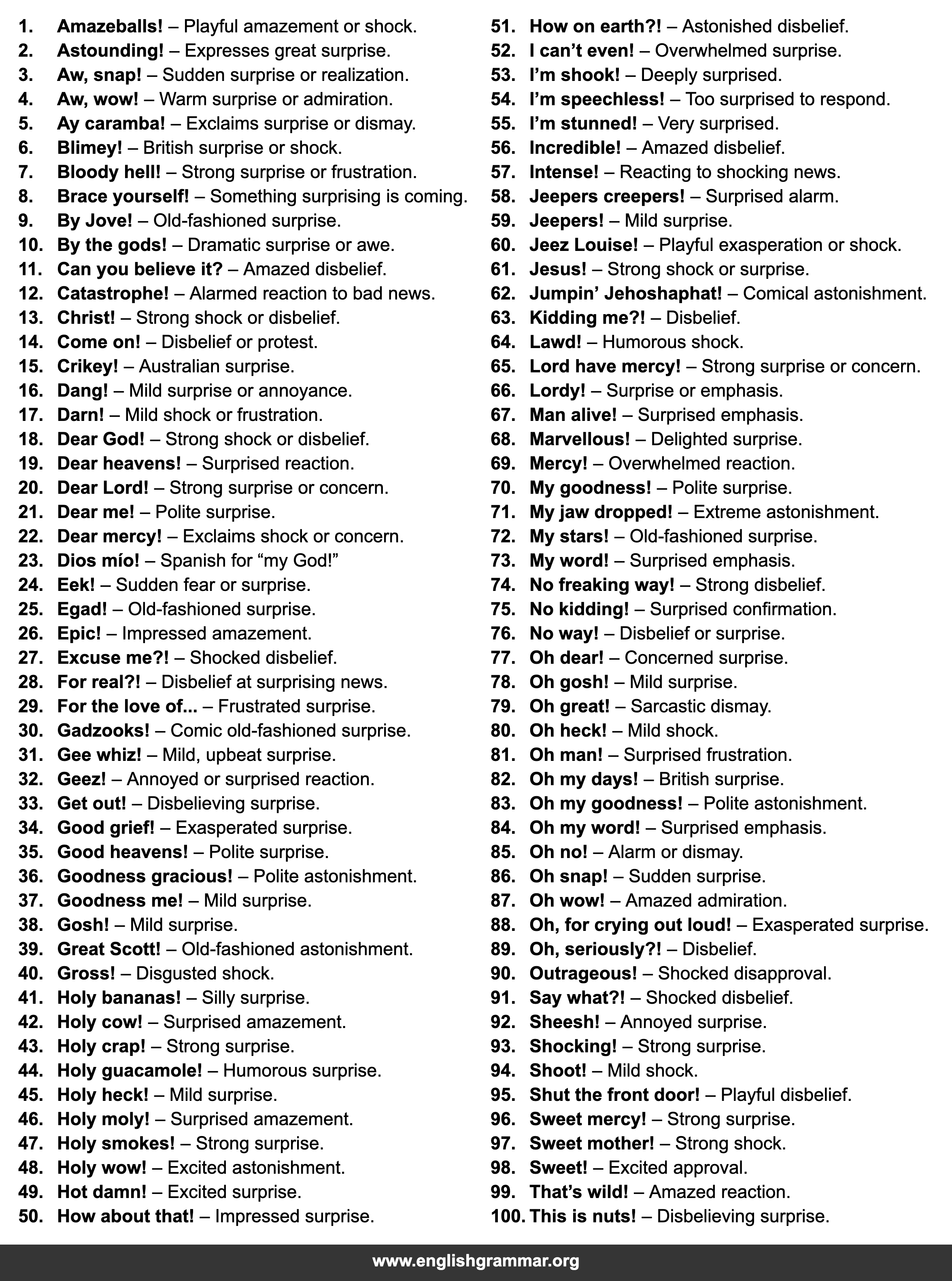 | 48. | Holy wow! | Excited astonishment. |