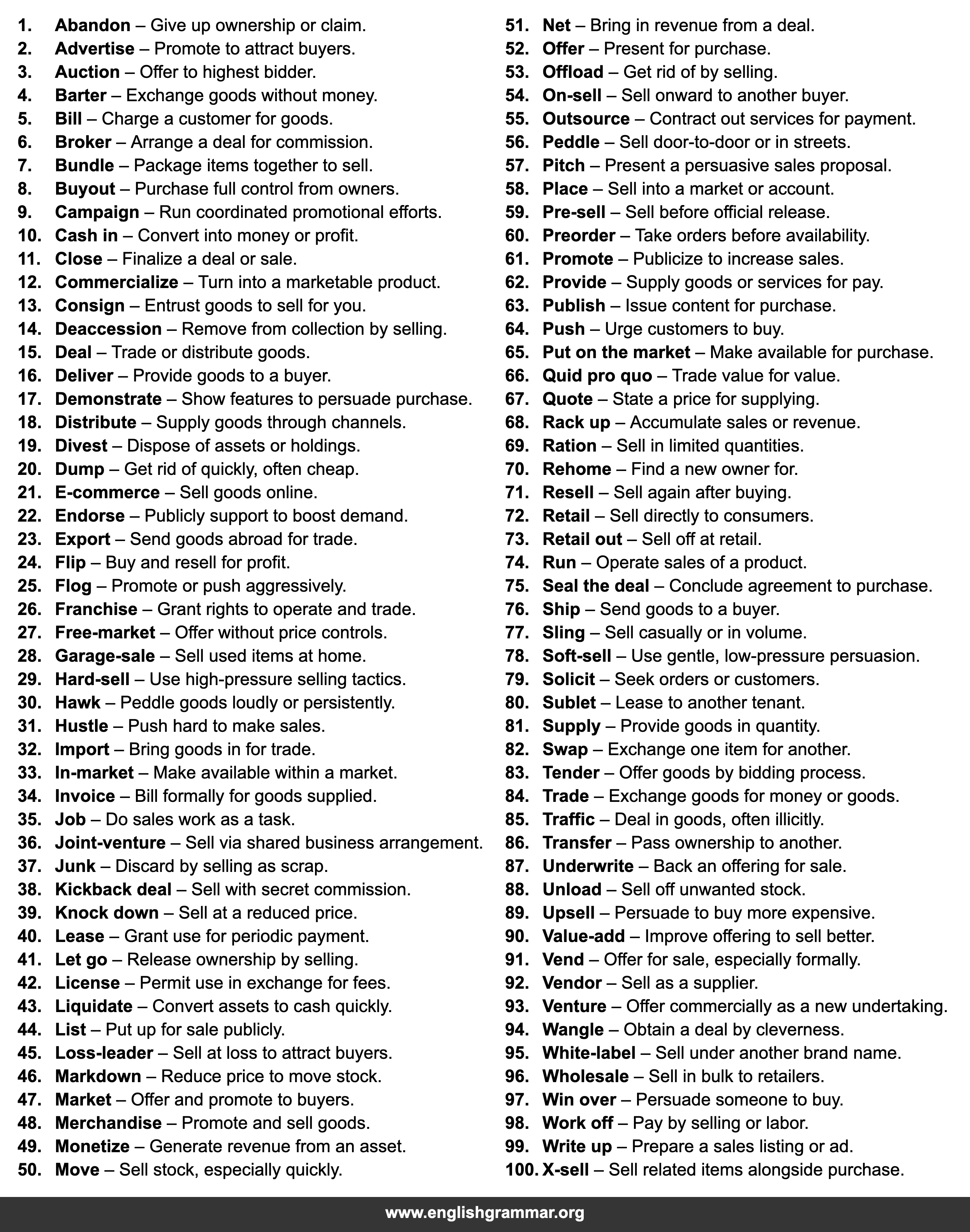 | 43. | Liquidate | Convert assets to cash quickly. |