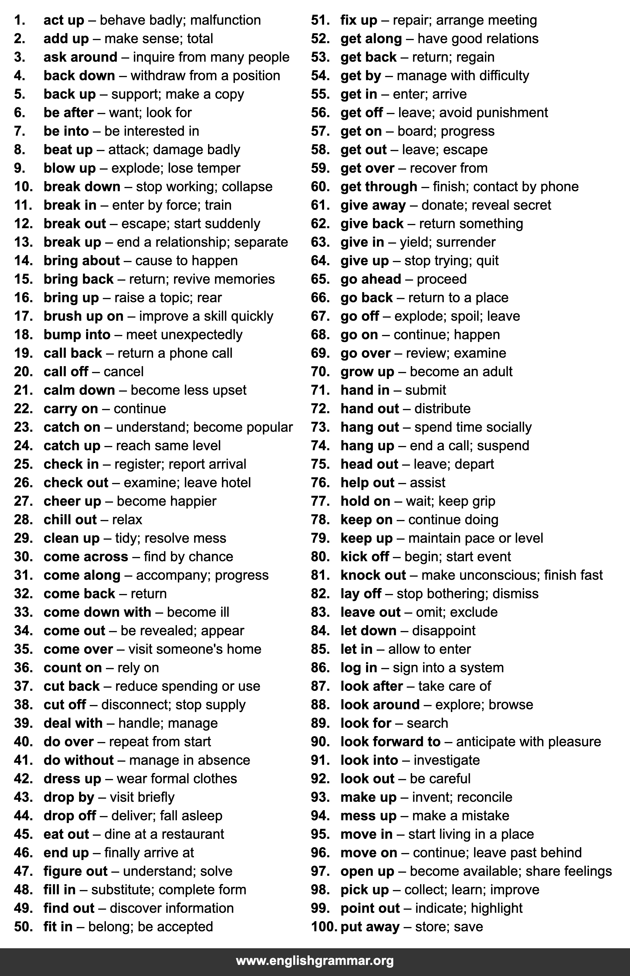 | 78. | keep on | continue doing |