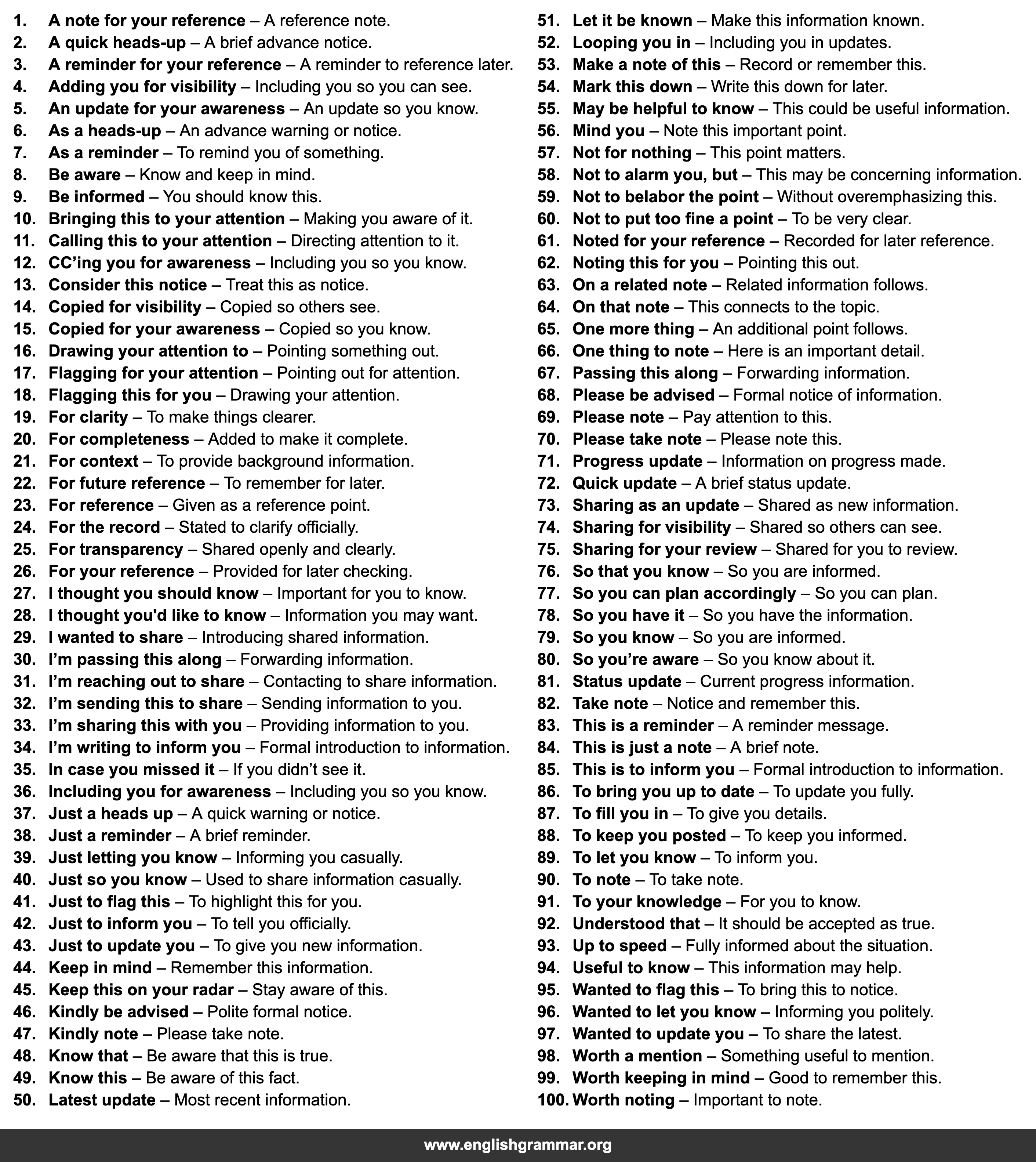 | 42. | Just to inform you | To tell you officially. |