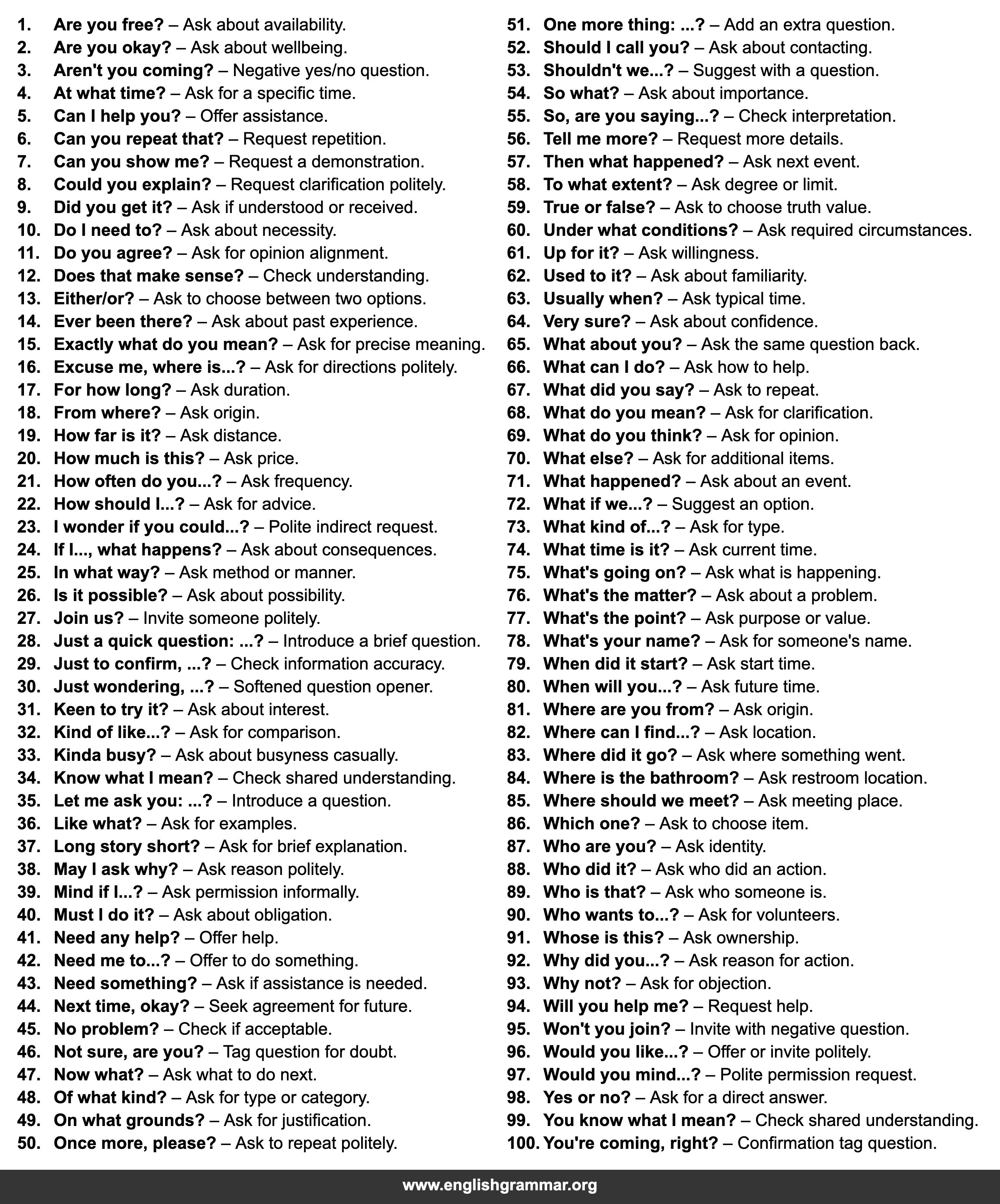 | 13. | Either/or? | Ask to choose between two options. |