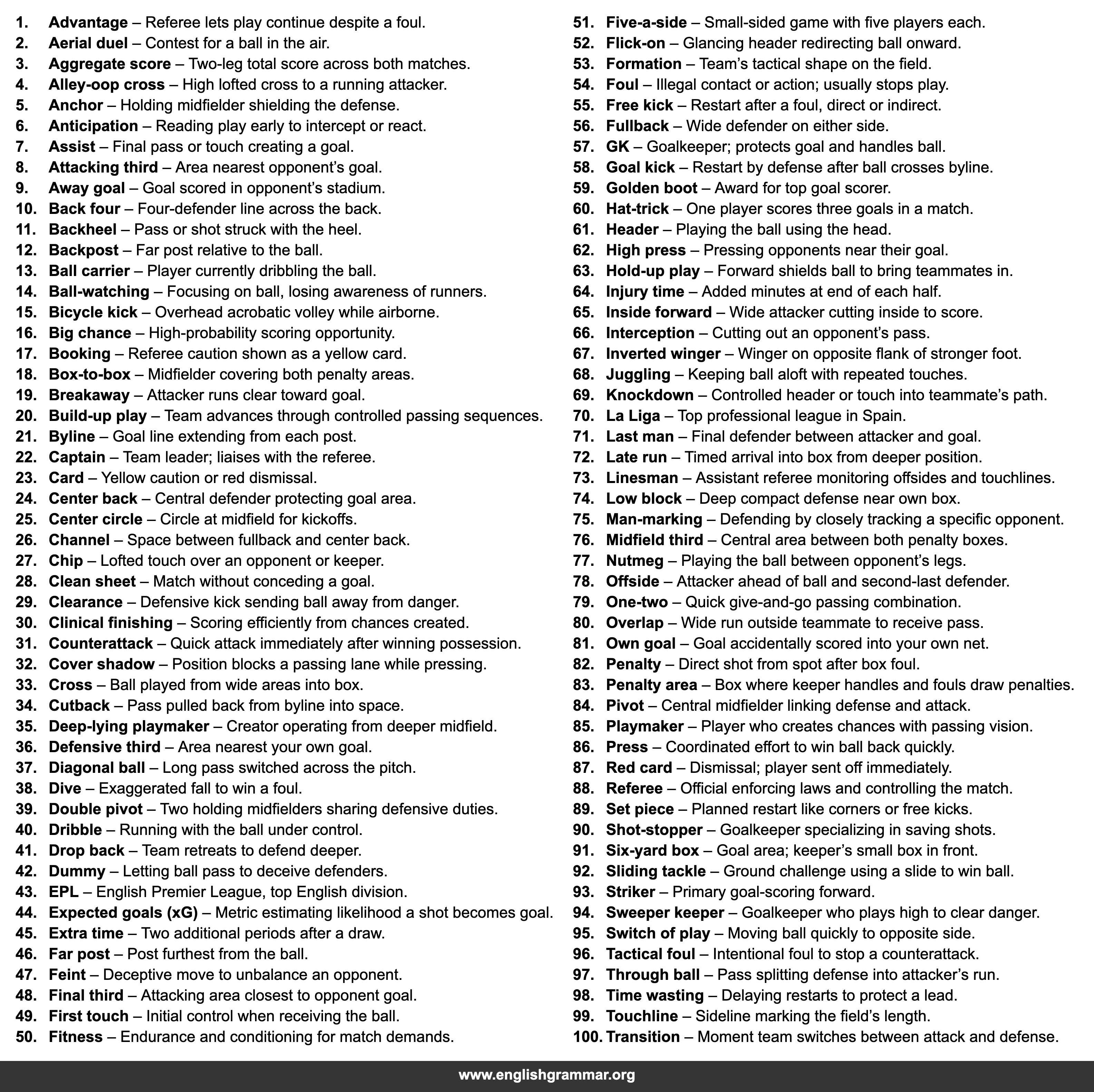 | 100. | Winger | Wide attacker providing width and crosses. |