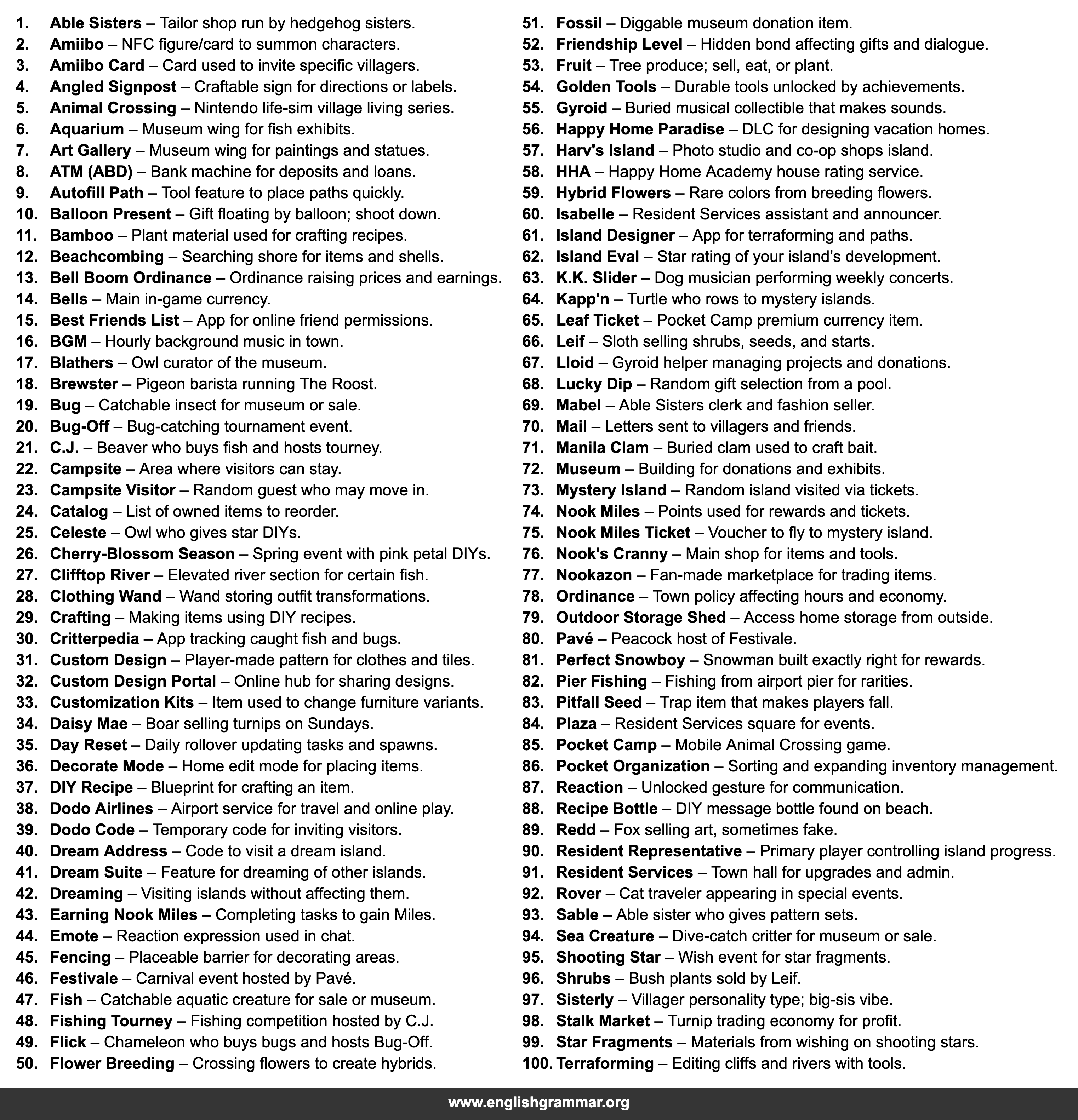 | 74. | Nook Miles | Points used for rewards and tickets. |