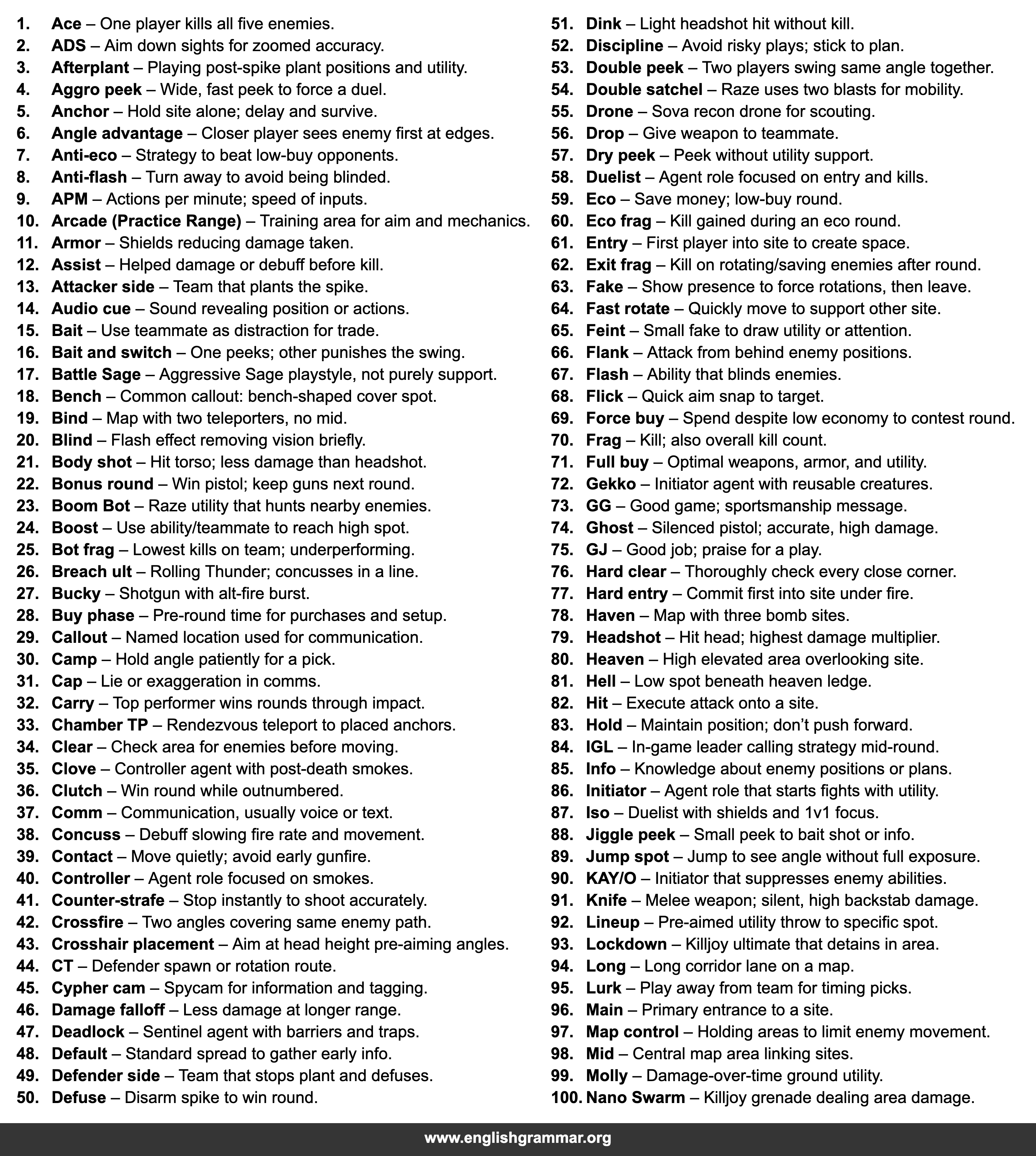 | 58. | Duelist | Agent role focused on entry and kills. |