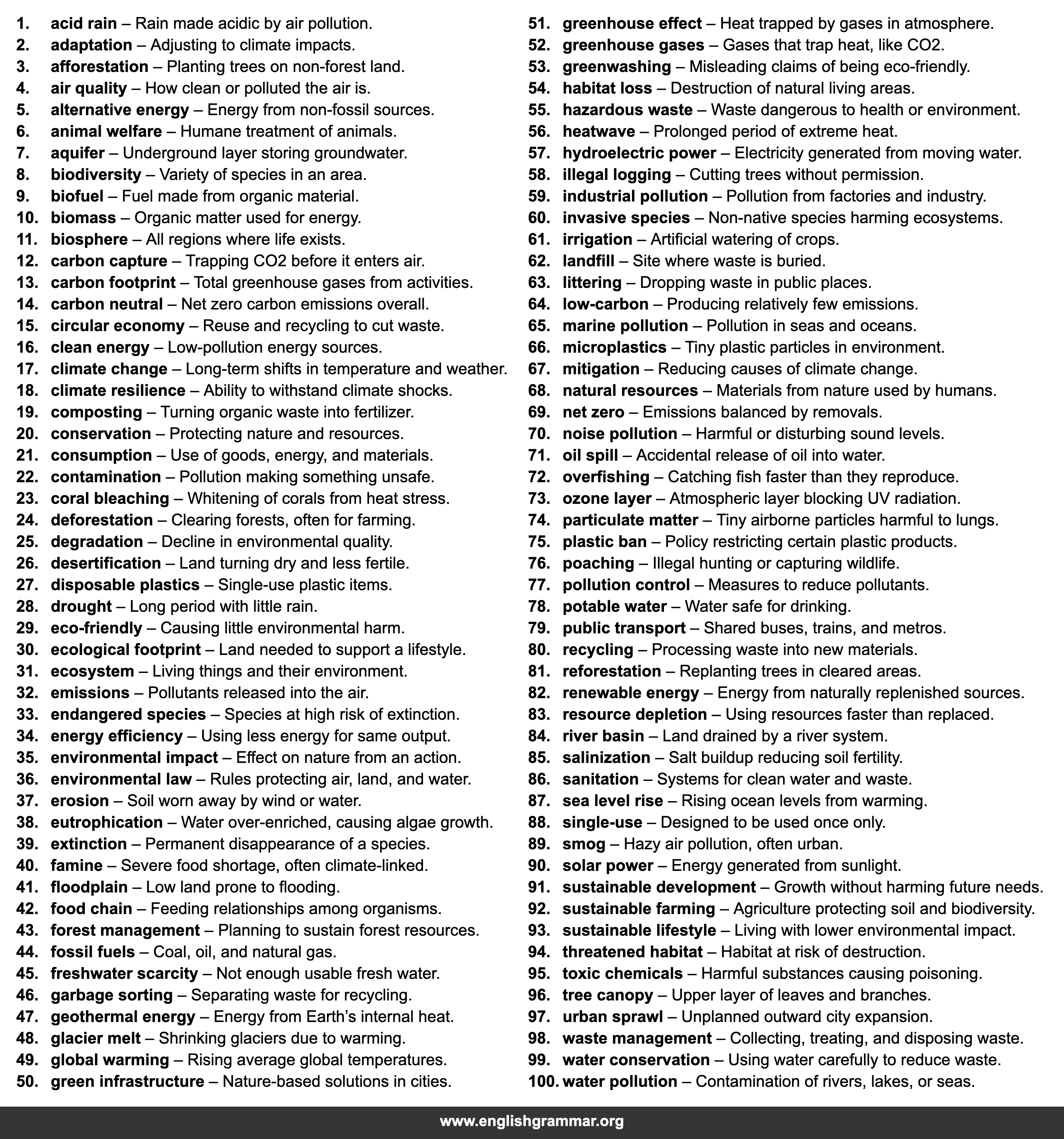 | 93. | sustainable lifestyle | Living with lower environmental impact. |