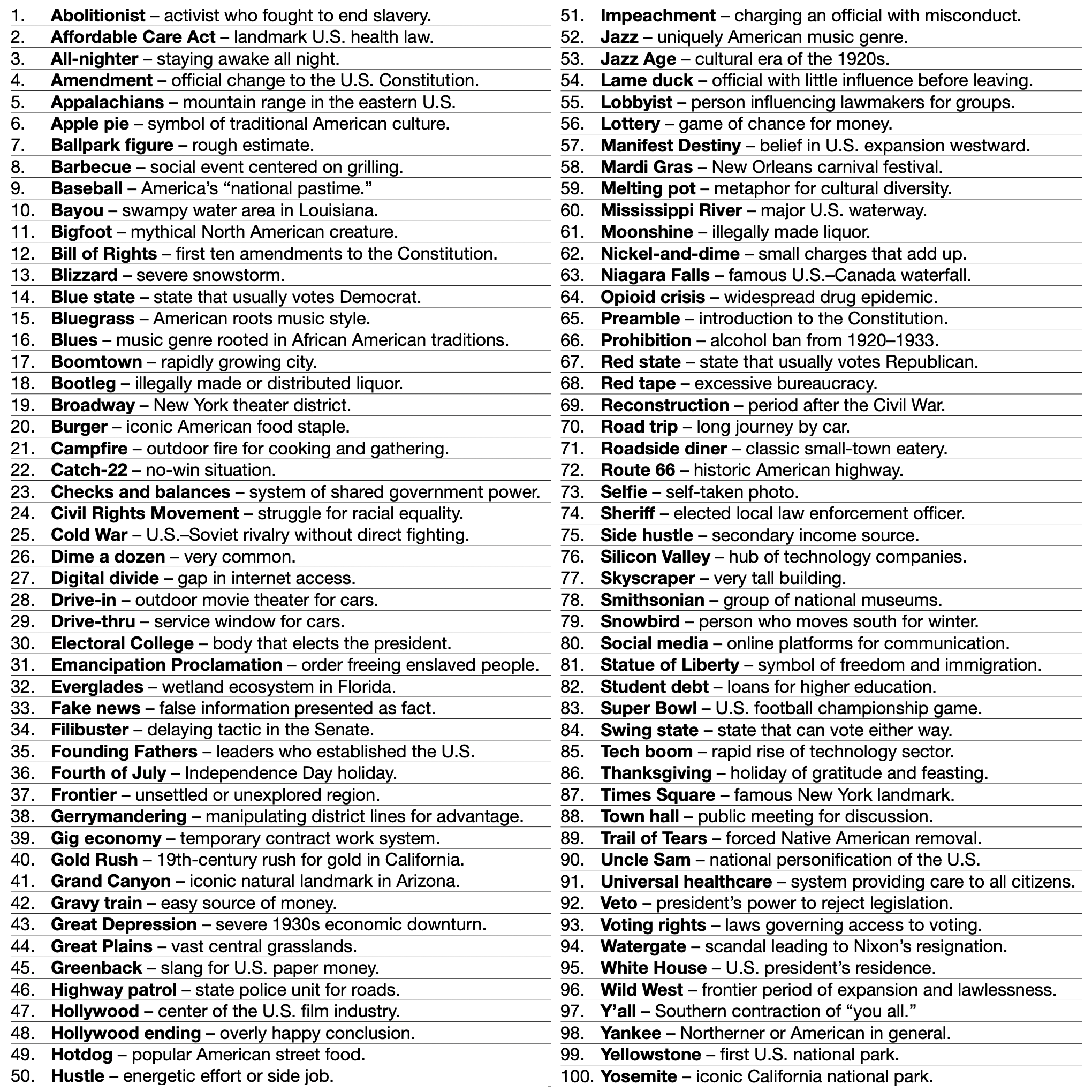 | 59. | Melting pot | Metaphor for cultural diversity. |