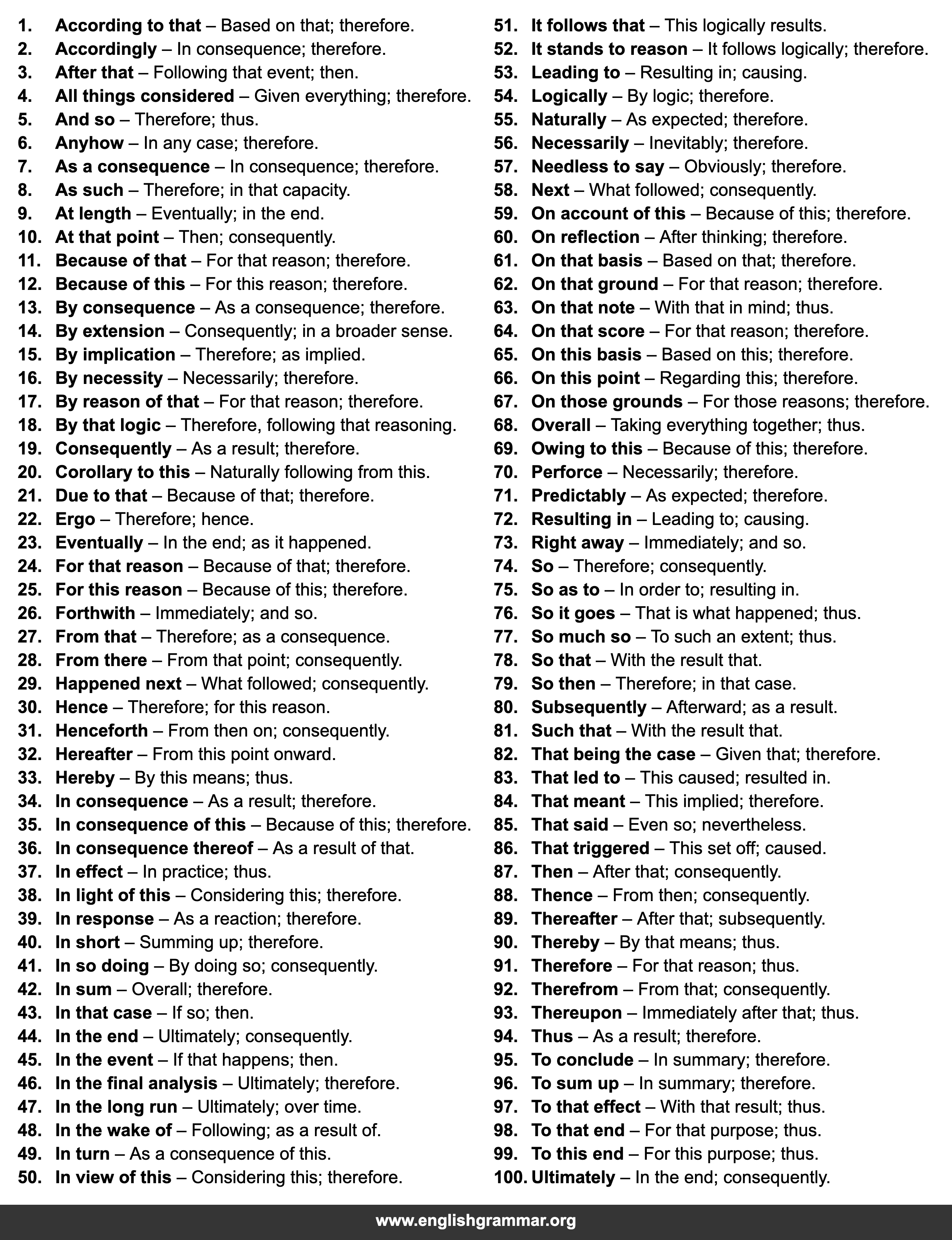 | 34. | In consequence | As a result; therefore. |
